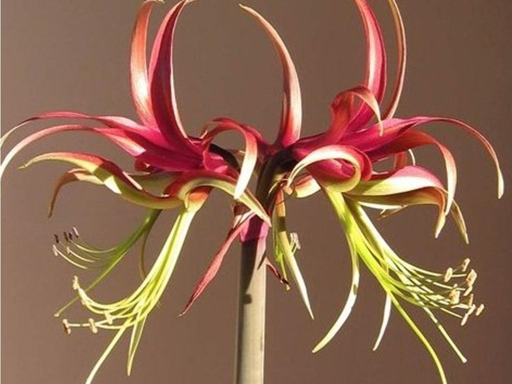 Amarylis 'Chico' - pochádza z tropickej a subtropickej Južnej Ameriky. Skupina Spider Group nadväzuje na druh Hippeastrum cybister z Bolívie a severnej Argentíny, ktorý rastie na teplejších, sezónne suchších stanovištiach a je známy úzkymi, pretiahnutými okvetnými lístkami. Kultivar 'Chico' patrí medzi tzv. cybister typy, ktoré pôsobia vzdušnejšie ako bežné veľkokveté zornice. Z vyzretej cibule sa obvykle vyvinie 1–2 hrubé stvoly vysoké približne 40–45 cm a na nich sa postupne otvára až okolo šiestich kvetov. Kvety mávajú priemer zhruba 12–15 cm, ale vďaka štíhlym okvetným lístkom nepôsobia masívne. Farby sú kontrastné, horné okvetné lístky bývajú červenohnedé až čokoládové, spodné svetlo zelené až limetkové, uprostred vystupujú dlhé tyčinky a čnelka, ktoré sú pre Spider Group typické. Listy sú remeňovité, sýto zelené a po odkvitnutí pomáhajú cibuľu znovu doplniť zásoby. Listová ružica obvykle zaberie 20–25 cm v priemere. V interiéri sa 'Chico' uplatní ako solitér v nádobe, v zimných aranžmánoch aj ako kvet na rez do úzkej vázy, kde vynikne „pavúčia“ kresba bez ťažkého dojmu klasických kultivarov ako 'Red Lion'.