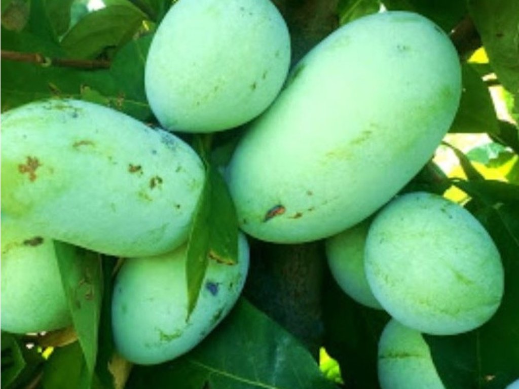 Ásimina trojlaločná 'Mango' - ovocný strom pôvodom z východnej časti Severnej Ameriky, kde rastie na okrajoch lužných lesov av údolných nivách s hlbšou, humóznou pôdou. Odroda 'Mango' sa v európskych katalógoch objavuje tiež pod označením 'Mitchell Mango' a býva vyhľadávaná pre väčšie plody a výraznejšiu tropickú arómu. V záhradách vytvára menší strom so spočiatku pomalším rastom, obvykle 3–5 m vysoký a približne 3–4 m široký. Listy sú nápadne veľké, celokrajné, v lete sviežo zelené a na jeseň sa farbia do žlta. Kvety sa otvárajú na jar, najčastejšie v apríli až máji, majú tmavo vínovú farbu a bývajú jemne korenisto aromatické, pričom opelenie zaisťujú najmä muchy a chrobáky. Plody dozrievajú postupne, spravidla v októbri, sú zelenožlté až žltkasté, často veľmi veľké, v dobrých podmienkach okolo 250 – 300 g. Dužina je krémová, mäkká a lyžičková, chuť sa opisuje ako zmes banánu, manga a vanilky. V kuchyni sa používa hlavne čerstvá dužina do krémov, zmrzlín, sorbetov, jogurtu alebo do cesta, pretože po tepelnej úprave si ponecháva časť arómy. Jedia sa iba dužina, semená a šupka sa obvykle nekonzumujú. Plody bežne obsahujú prírodné cukry a vlákninu, doplnkovo aj množstvo vitamínov a minerálnych látok, preto sa hodia do pestrého jedálnička. Do plodnosti prichádza 3. – 4. rokom.