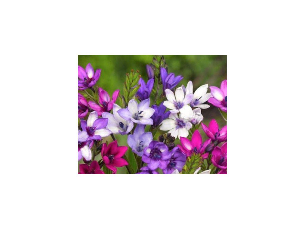 Babiana 'Kew hybrids' - nenáročná trvalka, ktorá od apríla do júla kvitne bielymi, ružovými a fialovými kvetmi. Dorastá do výšky 15-20 cm. Ideálna do nádob, ozdobných koryt či do záhonu. Vhodná na rez.