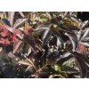 Baza čierna 'Thundercloud' - atraktívny opadavý ker s výrazne tmavým olistením a dekoratívnymi kvetmi. Dorastá do výšky okolo 2,5-3 metrov a vytvára hustý, rozložitý habitus. Jeho hlboko vykrajované listy majú sýto purpurovú až takmer čiernu farbu, ktorá na slnečnom stanovisku získava ešte intenzívnejší odtieň. V júni ker bohato kvitne veľkými, vonnými kvetenstvami zloženými z drobných ružovo bielych kvetov, ktoré krásne kontrastujú s tmavým olistením. Po odkvitnutí sa tvoria čierne plody, ktoré sú obľúbené u vtáctva a možno ich využiť aj na výrobu sirupov, džemov alebo likérov.