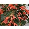 Begónia Bertinii 'San Francisco' - bohato kvitnúca begónia, ktorá patrí do skupiny Bertinii, ktorá nadväzuje na druh Begonia boliviensis z horských hmlistých lesov a skalných svahov v Andách. V záhradníckej literatúre sa uvádza, že pôvodná „begónia bertinii“ vznikla v roku 1872 výberom a zušľachtením z Begonia boliviensis, spájaným s menom Monsieur Bertin. Obchodne sa tento kultivar objavuje aj v kolekcii Sun Cities Collection. Rastlina vytvára bujný trs vysoký približne 40–60 cm a podobne široký, pričom postranné výhony sa cez okraj nádoby skláňajú do mäkkých previsov. Listy sú štíhle, kopijovité až úzko vajcovité, v sýto zelenom odtieni a s jemne pílovitým okrajom, na dotyk pôsobia pevnejšie ako u klasických hľuznatých begónií do polotieňa. Od júna do októbra nesie na koncoch výhonov zvonkovité kvety v lososovo oranžovej až teple ružovej farbe, väčšinou po dvojiciach, takže previs pôsobí naživo aj bez doplnkových letničiek. Kvety nebývajú výrazne vonné. V kompozíciách sa osvedčuje s lobelkou, bakopou, dichondrou alebo s jemnolistými trávami, kde vynikne kontrast zvončekových kvetov a úzkych listov. Pletivá obsahujú šťaveľany, preto sa u domácností s deťmi a domácimi miláčikmi volia umiestnenie mimo dosahu okusovania.