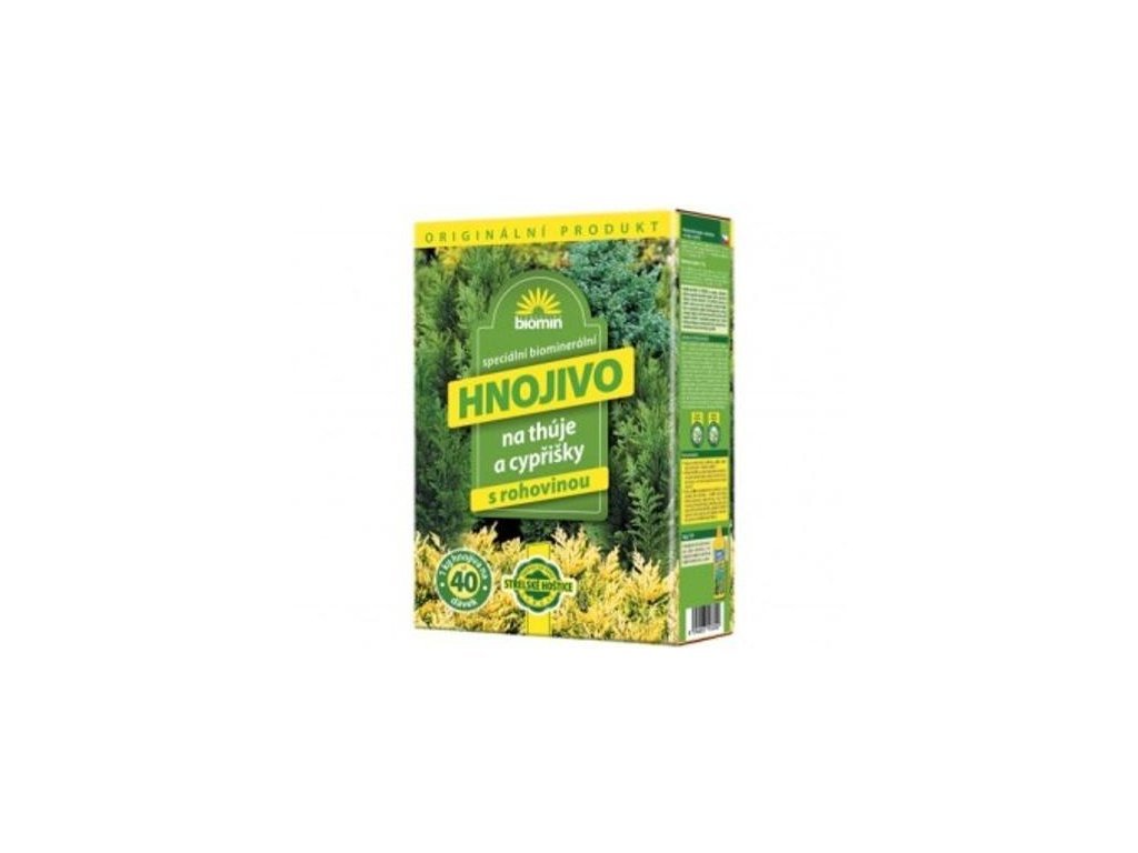 Organicko-minerálne granulované hnojivo špeciálne určené pre tuje, cyprušteky a ďalšie okrasné ihličnany a koniférie s postupným uvoľňovaním živín počas vegetácie vďaka obsahu organicky viazaného dusíka z mletej rohoviny. Tento dusík sa mikrobiálne rozkladá, čím je rastlinami dlhodobo využívaný a napomáha rovnomernému rastu, zdravému vývoju koreňového systému a hustému olisteniu. Hnojivo zároveň zlepšuje biologickú aktivitu pôdy, jej štruktúru a dýchanie koreňov, reguluje vodný režim a podporuje odolnosť rastlín voči stresom a chorobám, čo je pre okrasné dreviny so stálym olistením významné. Organicko-minerálna formulácia pomáha aj ďalším okrasným kríkom v okolí.