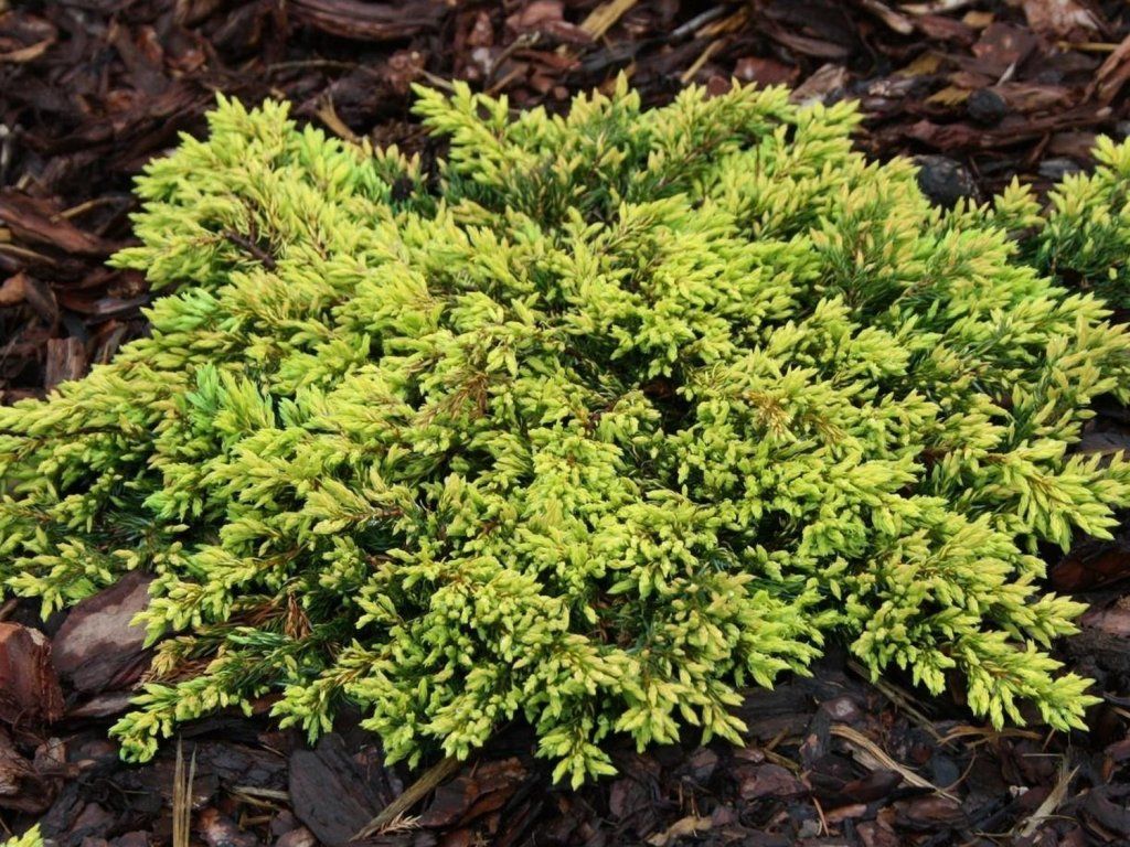 Borievka obyčajná 'Goldschatz' - patrí medzi nízke, pomaly rastúce kultivary pôvodného európskeho druhu, ktorý je rozšírený v chladnejších oblastiach Európy a Ázie. Druh bežne osídľuje suchšie stráne, vresoviská a svetlé borovicové lesy, čo vysvetľuje jeho výbornú odolnosť voči vetru, slnku i chudobnejším pôdam. Kultivar 'Goldschatz' sa vyznačuje kompaktným, široko rozprestretým hábitom, v ktorom jednotlivé vetvy vytvárajú nízky, mierne klenutý porast vysoký približne 0,3-0,4 m a široký 1-1,2 m. Ihlice sú ihlicovité, krátke a pichľavé, prevažne do žltkasto zelených tónov. Farba zostáva výrazná po celý rok, najintenzívnejšia býva na jar a pri pestovaní na plnom slnku. Borievka je dvojdomý, jarné kvety sú nenápadné, na samičích rastlinách sa môžu objavovať malé guľovité šištice modravo srienisté farby, ktoré však nie sú určené na jedenie. Ide o čisto okrasný kultivar s dekoratívnou hodnotou v plošných výsadbách. Uplatní sa v skalkách, štrkových záhonoch, suchých svahoch, na okrajoch ihličnatých skupín aj v menších nádobách. Jeho zlatožlté ihličie vytvára príjemný kontrast k tmavozeleným formám borovíc a borievok, dobre ladí so šedolistými trvalkami, ako sú divozely či kavyly a vnáša svetelný akcent do moderných minimalistických výsadieb.