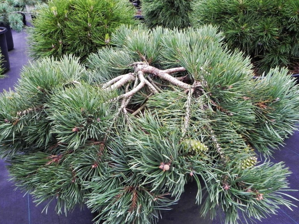 Pestovanie: Najlepšie vyfarbenie a hustotu ihlíc majú na plnom slnku, v ľahkom polotieni rastie časť kultivarov stále spoľahlivo, ale koruna býva voľnejšia. Závetrie je výhodné hlavne v zime, kedy kombinácia vetra a slnka podporuje vysychanie ihlíc, v teplých nížinách pomáha mikroklíma s chladnejším podložím a mulčom. Pôda sa osvedčuje priepustná, piesočnato-hlinitá až kamenistá, v ťažkých íloch je dôležitá drenáž, zakrpatené formy reagujú citlivo na premokrenie. Odporúčané pH býva približne 4,5-6,5, pri mnohých záhradných pôdach funguje aj mierne kyslé až slabo neutrálne prostredie. Kontajnerované rastliny sa vysádzajú od marca do novembra, v teplom období s pravidelnou zálievkou, aby koreňový bal nepresychal, najmä počas prvého leta. Po zakorenení býva odolnosť voči suchu stredná až vysoká, napriek tomu sa u zakrpatených kultivarov vypláca rovnomerná vlaha pri dlhých horúčavách. Hnojenie je vhodné striedme, na jar menšou dávkou pomaly rozpustného hnojiva pre ihličnany, nadbytok dusíka zvyšuje mäkký prírastok a riziko chorôb. Rez sa obvykle nevyžaduje, na zahustenie sa niekedy skracujú jarné „sviečky“ v máji až júni. Mulč z kôry stabilizuje vlhkosť aj teplotu pôdy. Pestovanie v nádobe je časté, potrebná je drenážna vrstva, priepustný substrát a zimná ochrana nádoby proti premrznutiu koreňov, pri obleve sa stráži vlhkosť. Mrazuvzdornosť zakrpatených borovíc býva vysoká, okolo -30 ° C, rizikom je skôr zimné vysychanie a premokrenie. Zo škodcov sa môžu objaviť roztočce a vošky pri suchu, z chorôb sypavky a koreňovej hniloby v ťažkej pôde. Rozostupy sa volia podľa cieľovej šírky, orientačne 0,8–1,5 m pri vankúšových formách a širších zakrpatených kultivaroch okolo 1,5–2,5 m.