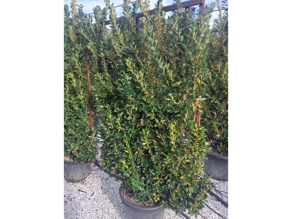 Pestovanie: Prospieva na svetlých stanovištiach s dostatkom rozptýleného svetla, ideálne na plnom slnku až v polotieni. Zásadné je závetrie, pretože zimný vietor a vysušujúce mrazy môžu poškodzovať listy, najmä u mladších rastlín. V našich podmienkach sa najlepšie osvedčuje pestovanie v chránených mikroklímách, napríklad pri južných a západných múroch domov, v mestskej zástavbe alebo vo dvoroch. Pôda má byť humózna, živná a dobre priepustná, hlinitá až hlinitopiesčitá, s odporúčaným pH v rozmedzí 6-7,5. Dôležitá je drenáž, predovšetkým v ťažších pôdach, kde sa odporúča prímes piesku alebo štrku. Výsadba je vhodná od marca do októbra mimo obdobia silných mrazov a extrémneho sucha. Zálievka má byť pravidelná, najmä v prvom roku po výsadbe a pri rastlinách pestovaných v nádobách. Substrát sa udržuje rovnomerne vlhký, bez dlhodobého premokrenia. Prihnojovanie sa vykonáva mierne na jar, prípadne ešte raz na začiatku leta, vyváženými hnojivami pre okrasné dreviny. Rez znáša veľmi dobre a je možné ho vykonávať na jar alebo počas vegetácie, kedy podporuje zahustenie a umožňuje tvarovanie do kompaktného kríka či nízkeho živého plotu. Mrazuvzdornosť sa pohybuje približne medzi -12 až -15 °C, preto sa v chladnejších oblastiach odporúča zimná ochrana koreňového krčku mulčom a ochrana nadzemnej časti netkanou textíliou. Pri pestovaní v nádobách je vhodné prezimovanie na chránenom, svetlom mieste bez silných mrazov. Rastlina je všeobecne odolná, pri suchom a teplom počasí sa môžu objaviť puklice alebo roztočce, najmä u jedincov pestovaných v nádobách. Pri výsadbe do živých plotov sa osvedčujú rozostupy približne 40-60 cm podľa požadovanej hustoty.