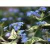 Brunera veľkolistá 'Variegata' - krásny kultivar, ktorý pochádza z lesnatých svahov a horských podrastov severovýchodného Turecka a Kaukazu, kde rastie v humóznych, vlhších pôdach na okrajoch potokov aj v riedkom tieni. Kultivar 'Variegata' (často uvádzaný aj pod menom 'Dawson's White') je cenený pre srdcovité listy 15-25 cm dlhé so svetlo krémovým lemom a zelenou žilnatinou. V tieni pôsobí ako jemný „odraz svetla“ a drží dekoratívnosť aj po odkvitnutí, keď mnoho jarných trvaliek stráca tempo. Rastlina vytvára oddenkatý, trsnatý habitus bez dlhých výbežkov, obvykle 30–40 cm vysoký a 45–60 cm široký, plnú veľkosť dosahuje pozvoľna počas 2–5 rokov. V apríli a máji sa nad olistením zdvíhajú tenké, vetvené stonky vysoké približne 30–45 cm s latami drobných kvetov 5–7 mm, nezábudkovo modrých s bielym očkom. Kvety poskytujú peľ aj nektár skorým opeľovačom, po opelení sa môžu tvoriť drobné tvrdky av priaznivých podmienkach sa porast mierne vysemeňuje. V kompozíciách dobre nadväzuje na bohyšky, paprade, škornice, dlžuchy a pľúcniky, vyniká aj u rododendrónov a vresovísk, kde jemná kresba listov zmäkčuje línie kríkov. Porast nemá tŕne a bežne sa uvádza ako nejedovatý.