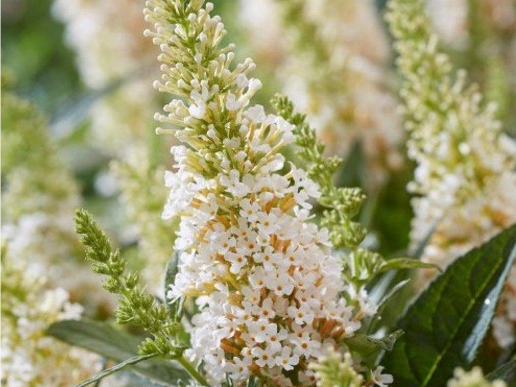 Budleja dávidova Butterfly Candy 'Little White' - jeden z menších kultivarov obľúbeného motýlieho kríka. Rastie husto a rovnomerne do pologuľovitého kríka, v našich podmienkach obvykle 60–80 cm na výšku aj šírku. Výhony nesú striedavé, kopijovité listy šedozelenej farby, na rube jemne plstnaté, čo znižuje odpar a podporuje odolnosť voči letnému slnku. Kvetenstvo sa tvorí na koncoch aktuálnych letorastov. Od júla do septembra nesie nápadné, vonné laty bielej farby s drobným oranžovým očkom uprostred jednotlivých kvetov. Vôňa je sladká, medová, dobre viditeľná v teplejších dňoch a láka pestrý hmyz – motýle, včely aj čmeliaky. Vďaka nízkemu a pevnému habitu sa uplatní v predných partiách zmiešaných záhonov, ako lem cestičiek, v štrkových výsadbách aj vo väčších mobilných nádobách. V kompozícii sa osvedčujú partneri s rovnakými nárokmi na svetlo a suchšie, priepustné pôdy, napríklad levanduľa, šanty, rozchodníky a nižšie okrasné trávy. Biele kvety s jemným očkom fungujú ako pokojný akcent, ktorý zjednocuje výsadbu a zvýrazní farby letných trvaliek. Laty možno krátkodobo použiť na rez.