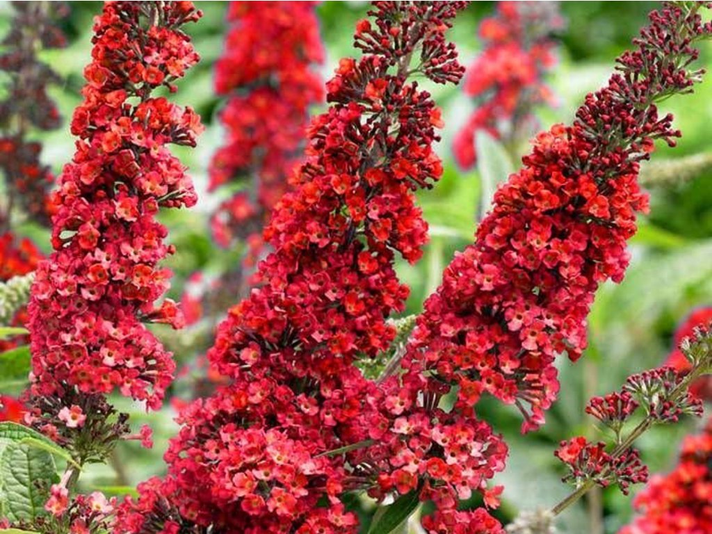 Budleja dávidova 'Butterfly Red' - letne kvitnúce ker s vysokou ponukou nektáru. Pôvod druhu siaha do horských svahov Číny, kde rastie na suchých, štrkovitých pôdach s dobrou drenážou. Z toho vychádzajú aj záhradné nároky – slnko a priepustné podložie. Habitus je stredne vzrastný, približne 1,5-2 m na výšku aj šírku, s oblúkovito rozložitými vetvami. Listy sú kopijovité, zvrchu stredne zelené, naspodku jemne plstnaté, čo obmedzuje výpar a chráni pred úpalom. Kvetenstvo sa zakladá na letorostiach aktuálneho roku. Od júla do septembra nesie zhruba 15–25 cm dlhé klasy zložené z trubkovitých kvetov s oranžovým okom. Tón kvetu je teplo červenoružový a sprevádza ho medová vôňa. Nektár slúži ako potrava pre motýle, čmeliaky a včely práve v období letného minima, preto je 'Butterfly Red' vhodná do prírode blízkych výsadieb. V záhradnej kompozícii sa uplatní ako voľne rastúci solitér pri posedení, v štrkovom rabate aj v zadnej časti zmiešaných trvalkových záhonov. Vhodnými partnermi sú levanduľa, šanty, echinacea a stredne vysoké okrasné trávy, ktoré zdieľajú nárok na slnko a suchšiu, priepustnú pôdu.