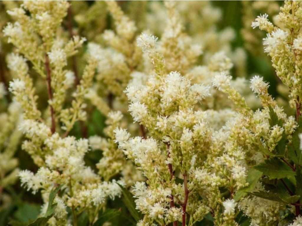 Astilba Arendsova 'Czerwona Lodyga' - kvet je biely. Dorastá do výšky približne 55 cm. Ideálna do skaliek alebo trvalkových záhonov, ktoré zatraktívni. Astilba dostala svoje meno podľa krásnych kvetov, ktoré pripomínajú nadýchané vtáčie perie. Kvety sú veľmi trvanlivé aj vo váze a dajú sa aj sušiť. Táto trvalka je skutočne ideálnou okrasnou rastlinou, ale okrem krásnych kvetenstiev vyniká aj svojím kompaktným tvarom.