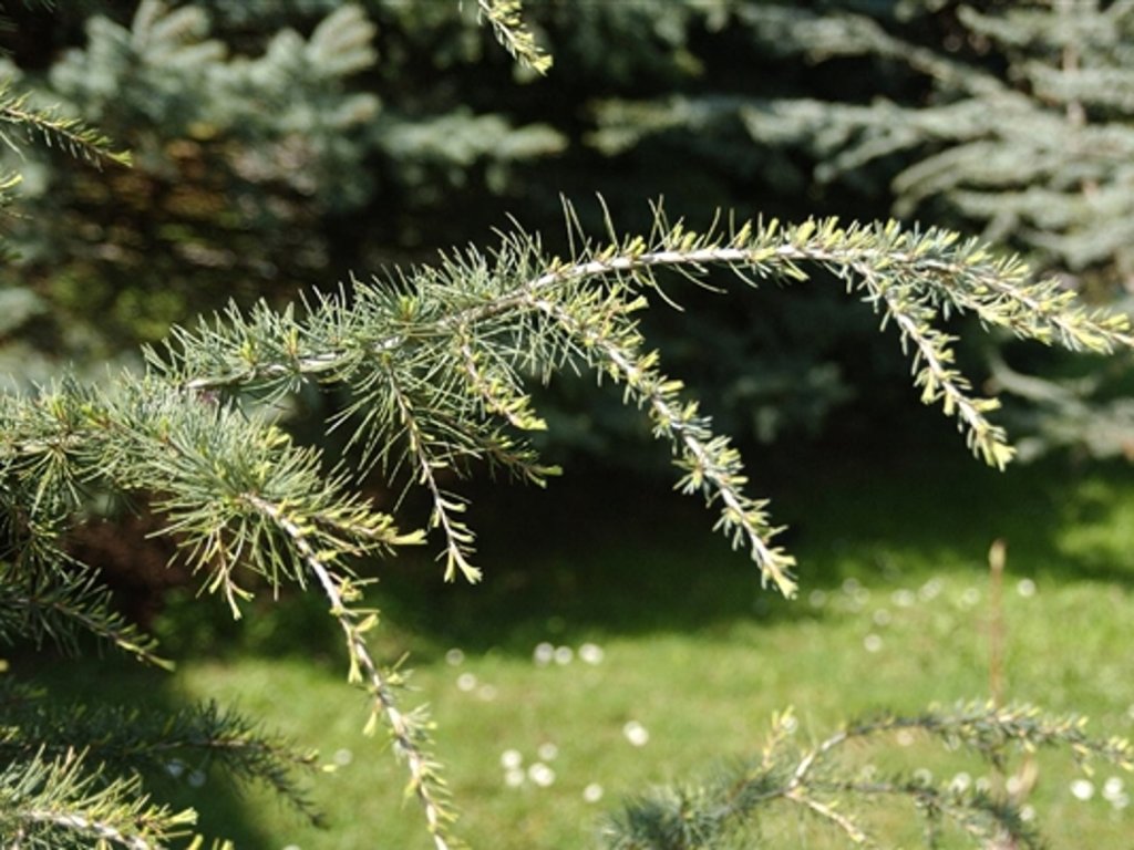 Céder himalájský 'Eisregen' - pochádza z horských lesov západných Himalájí a priľahlých oblastí Afganistanu a Pakistanu, kde rastie na slnečných svahoch s priepustnou pôdou a striedaním sucha a snehu. Kultivar 'Eisregen' bol vybraný v Nemecku z osiva z chladnejšej skupiny z oblasti Paktia a uvádza sa jeho blízkosť k výberu 'Karl Fuchs' (1979). V záhradách vytvára užšiu, vzpriamenú korunu s mierne previsnutými koncami konárov, takže strom nepôsobí ťažko av porovnaní s bežným druhom zostáva kompaktnejší. Ihlice sú tenké, modrozelené až šedo modré, vo zväzkoch po 20–30 na krátkych brachyblastoch, obvykle 2–4,5 cm dlhé, na jar býva modrastý tón najzreteľnejší. Tŕne netvoria a pri bežnom záhradnom použití sa radia k drevinám vhodným aj do priestoru s deťmi. Na starších rastlinách sa môžu objavovať vzpriamené šišky veľké zhruba 7–10 cm, ktoré vyzrievajú postupne a po dozretí sa na strome rozpadajú podobne ako pri jedlách. Živica jemne vonia najmä v teplých dňoch. Uplatnenie nachádza ako solitéra v menších aj väčších záhradách, v štrkových záhonoch av kompozíciách s tmavozelenými tismi, jedlami alebo krušpánom, kde modrý tón ihlíc zvýrazní štruktúru výsadby a zjemní línie stavieb.