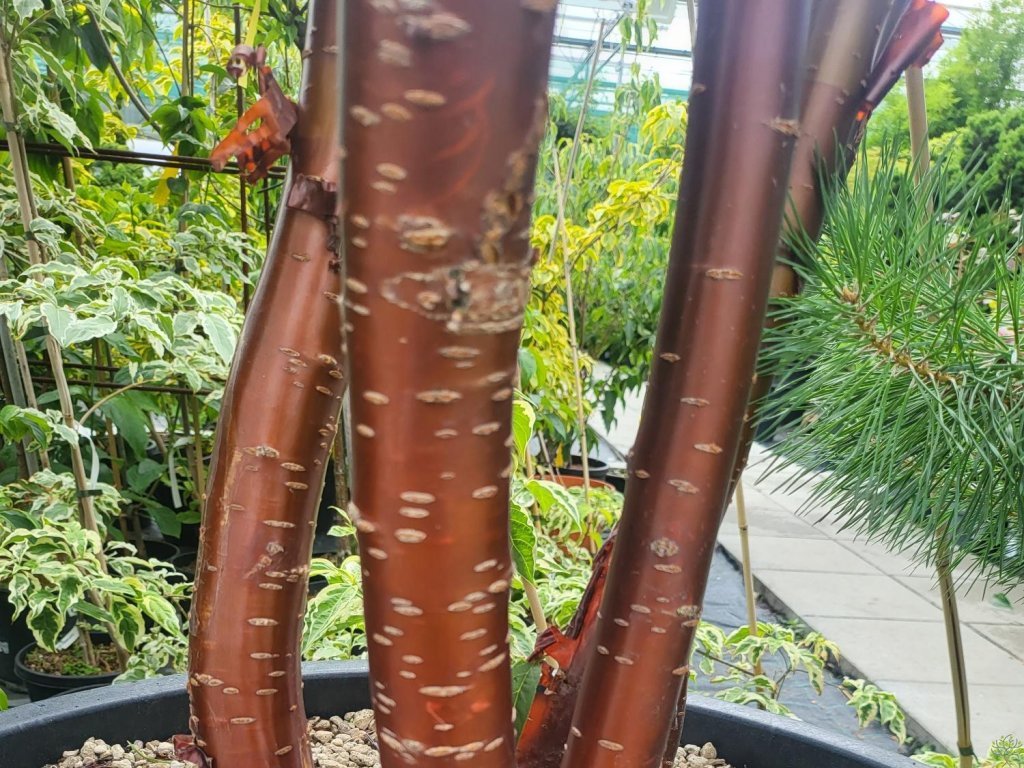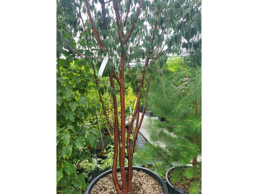 Čerešňa tibetská - výnimočný okrasný strom pochádzajúci z oblastí západnej Číny a Tibetu, ktorý je cenený predovšetkým pre svoju mimoriadne dekoratívnu kôru. Patrí medzi najkrajšie stromy s ozdobnou borkou a je atraktívna najmä v zimnom období, kedy vynikne jej vzhľad. Rastie ako menší až stredne veľký strom, obvykle 6 až 10 metrov vysoký, s úzkou, vzpriamenou až ľahko kužeľovitou korunou. Rast je pomalší, strom pôsobí elegantne a vzdušne. Najväčšou ozdobou je lesklá, mahagónovo hnedá až medená červená kôra, ktorá sa nápadne odlupuje v tenkých prúžkoch. Tento efekt je výrazný po celý rok, ale najviac vyniká v zime a skoro na jar. Listy sú úzke, kopijovité, sviežo zelené, na jeseň sa sfarbujú do žltých až oranžových tónov. Kvety sa objavujú v apríli až máji, sú drobné, biele, jednoduché a vyrastajú jednotlivo alebo v malých zväzkoch. Kvitnutie nie je hlavným okrasným prvkom, ale pôsobí jemne a prirodzene. Po odkvitnutí sa môžu tvoriť malé tmavé kôstkovice, ktoré nie sú významné. Je plne mrazuvzdorná, vhodná aj do chladnejších oblastí, a dobre znáša mestské prostredie. Hodí sa ako solitéra, do parkov, väčších záhrad, reprezentatívnych plôch alebo do kombinácie s tmavými ihličnanmi, kde jej lesklá kôra najlepšie vynikne. Je ideálnou voľbou tam, kde je žiaduci zimný efekt a celoročná dekoratívnosť.