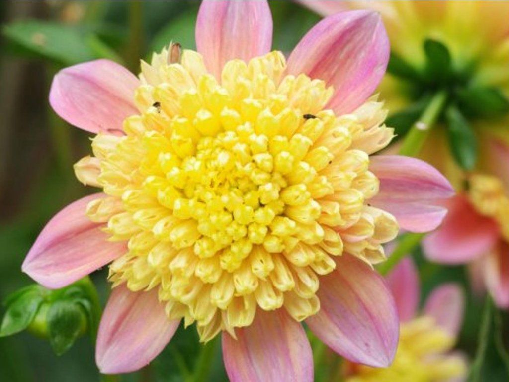 Dália 'Honey' - tento kultivar má kvety podobné sasankám. Vonkajšie okvetné lístky sú ružovo fialkové, farby sú pastelové. Vnútro kvetov je potom jasne žlté a tvoria ho drobné trubkovité kvety. Kvety majú priemer 2 cm. Pôvodný kultivar už z roku 1956. Dorastá do výšky okolo 50 cm.