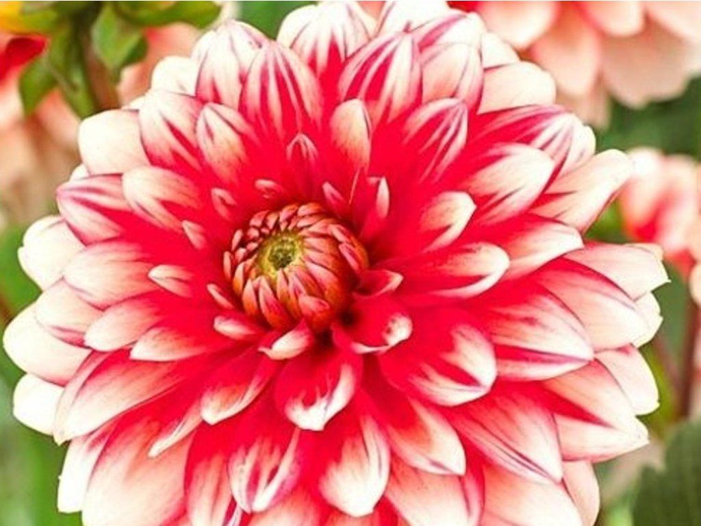 Jiřina 'Larry's Love' - túto krásku si zamilujete aj Vy. Biele okvetné plátky sa miešajú so žiarivo červeným stredom a vytvárajú tak skutočne zaujímavé veľké kvety. Odroda dorastá do výšky 90cm a nakvitá od začiatku júla až do októbra.