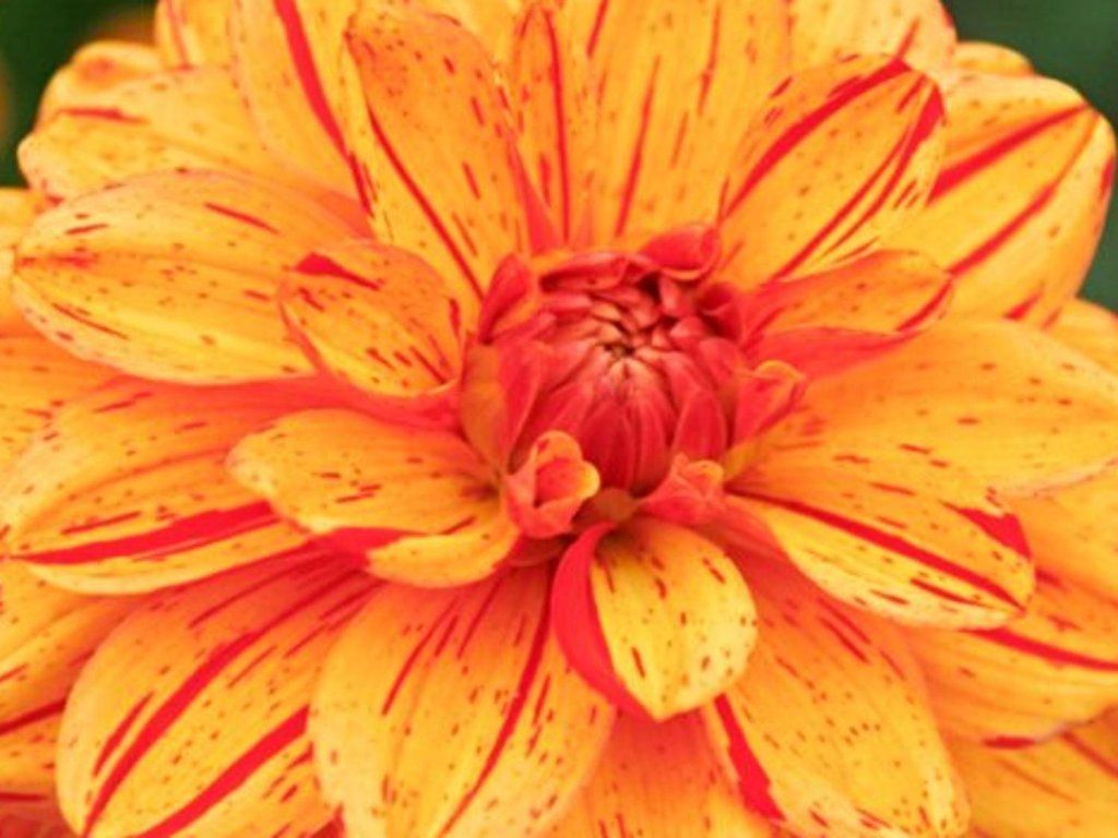 Jiřina 'Pasolini' - pôsobivý kultivar, v ktorom sa miešajú odtiene pomarančovo-oranžovej a žltej, všetko doplnené červeným žíhaním. Táto veľkokvetá odroda dorastá do výšky 90cm a nakvitá od júla.