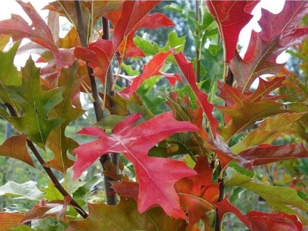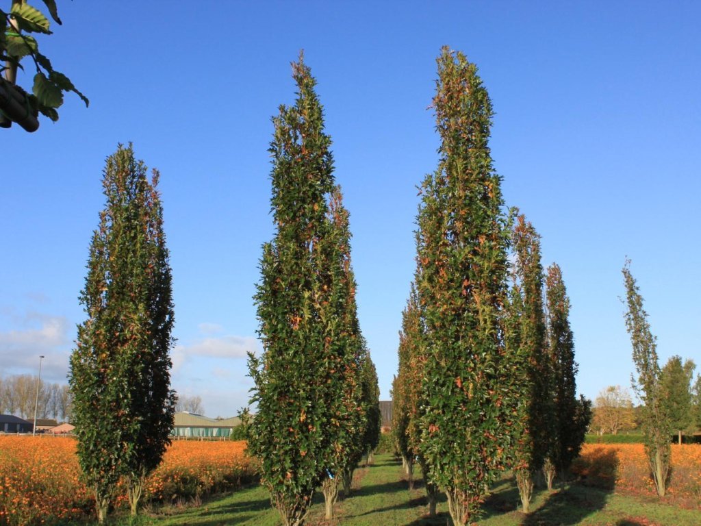 Dub bahenný 'Green Pillar' - tento kultivar sa vyznačuje štíhlym, elegantným vzrastom a stĺpovitou korunou, ktorá si zachováva kompaktný tvar aj vo vyššom veku. Dorastá do výšky 12–18m a šírky 2–3m, vďaka čomu je ideálny do úzkych mestských priestorov, parkov, ale aj ako solitér na záhrade. V lete sú jeho listy tmavo zelené, na jeseň sa premenia na ohnivo červené a oranžové odtiene, ktoré vytvárajú pôsobivý vizuálny efekt. Suché listy opadávajú postupne, často na vetvách vydržia až do zimy. Na jar strom rozkvitá nenápadnými zlatistými jahnedami, z ktorých sa neskôr tvoria drobné guľovité žalude. Kôra starších vetiev je sivasto hnedá s jemnými brázdami a mladé vetvy majú olivovo zelený odtieň. Dub odoláva mrazom až do -28 ° C, znáša veterné podmienky, znečistené ovzdušie a vlhšie, neutrálne či kyslejšie pôdy. Vďaka svojmu štíhlemu habitu, nápadnému jesennému vyfarbeniu a odolnosti je obľúbenou voľbou pre mestské výsadby, reprezentatívne záhrady aj radové výsadby.