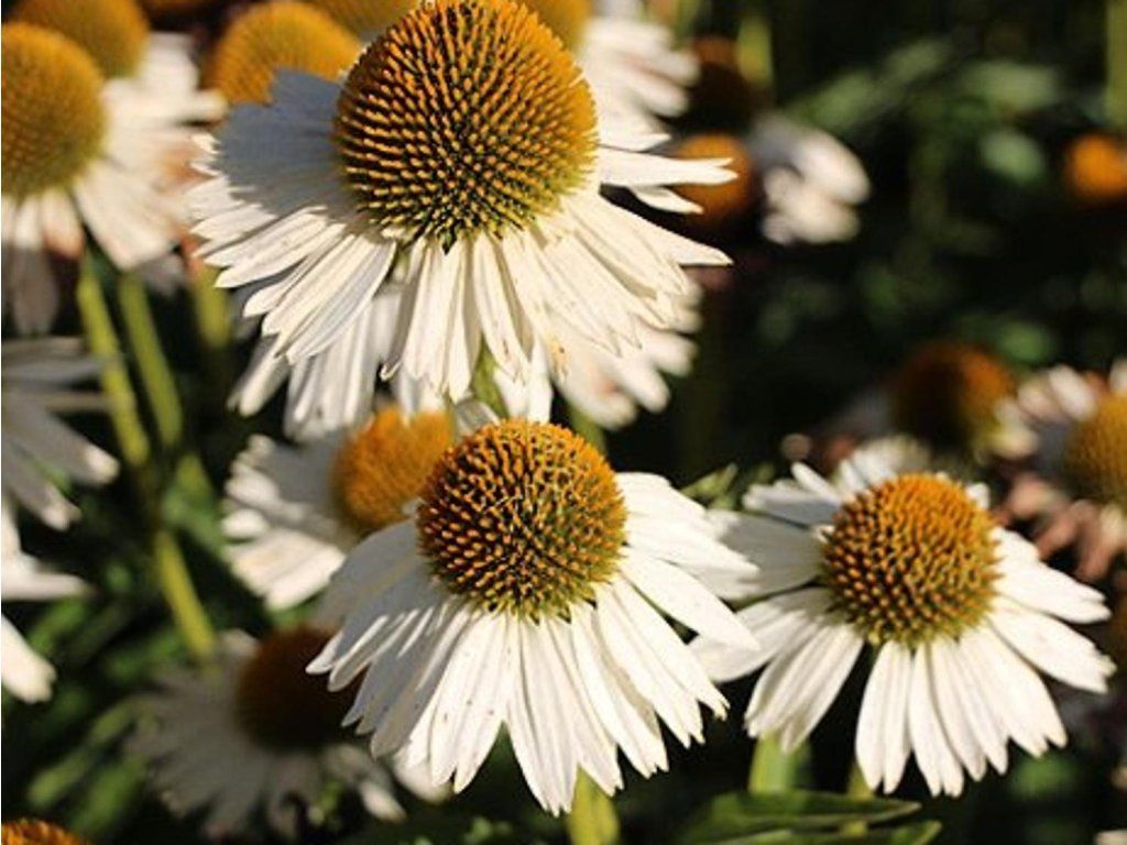 Echinacea 'Meditation White' - Stredne vysoký kultivar, dorastajúci do výšky 45-60cm a šírky 30-50cm. Snehobiele kvety sa objavujú od júla do septembra, sú vhodné na rez. Medonosná, mrazuvzdorná trvalka, vhodná aj do nádob.