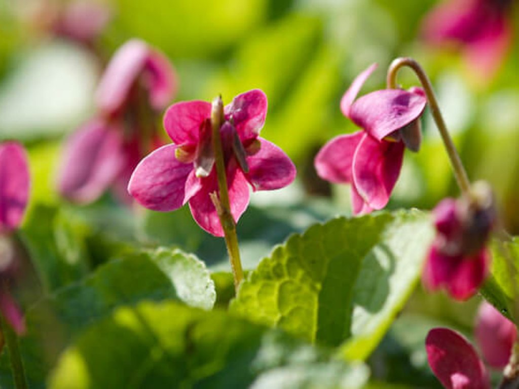Fialka voňavá 'Rubriflora' - pochádza z Európy a oblasti Stredomoria až po Kaukaz a prirodzene rastie na okrajoch listnatých lesov, v krovinách a vo svetlom podraste, kde na jar využíva svetlo pred olistením stromov. Kultivar 'Rubriflora' posúva klasickú „fialkovú“ paletu do ružovo-purpurových až červenofialových tónov a zachováva typickú sladkú vôňu, cenenú aj v parfumérii. Ide o nízku, vytrvalú trvalku s krátkym podzemkom a koreňujúcimi výbežkami, ktoré vytvárajú súvislé koberce. V marci až apríli sa nad prízemnou ružicou srdcovitých, tmavozelených listov objavujú jednotlivé kvety na krátkych stvoloch, pri niektorých porastoch sa môže prejaviť aj slabé jesenné opakovanie kvitnutia. Kvety sú jedlé a používajú sa najmä na dekoráciu a aromatizáciu, listy sa tradične pridávali do zmesí bylín, rastlina obsahuje vonné silice a ďalšie prírodné látky využívané v ľudovom bylinkárstve. V dospelosti máva porast výšku okolo 10–15 cm a rozšíri sa na 20–30 cm do šírky, pretože výbežky ľahko zakoreňujú v lístovke. Na jar patrí medzi cenné nektárodajné rastliny pre prvé včely a čmeliaky. V kompozícii sa uplatní ako voňavé podrastové poschodie pod ružami, kríkmi a ovocnými stromami alebo v tienistom trvalkovom záhone.