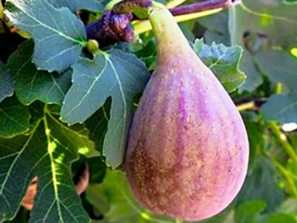 Figovník obyčajný 'Melanzana' - menej známa, no medzi zberateľmi a pestovateľmi veľmi cenená talianska odroda, ktorá vyniká atraktívnym vzhľadom plodov a výbornou chuťou. Názov „melanzana“ v taliančine znamená baklažán a odkazuje na typické tmavé až fialové sfarbenie plodov, pripomínajúce práve túto zeleninu. Rastie ako stredne bujný opadavý ker alebo menší strom vysoký približne dva až tri metre, s dobre rozkonáreným, pomerne kompaktným habitom a veľkými laločnatými listami. Vyhovuje jej teplé, slnečné stanovište a vďaka dobrej vitalite sa rýchlo zotavuje po reze aj po prípadnom zimnom poškodení. Plody odrody Melanzana sú stredne veľké až väčšie, nápadne atraktívne, s tmavofialovou až purpurovo čiernou šupkou. Ich tvar býva široko hruškovitý alebo mierne sploštený. Dužina je červená až malinovo ružová, veľmi sladká, šťavnatá, jemná a výrazne aromatická. Chuť je vyslovene dezertná, plná, s medovými a ovocnými tónmi a patrí k najsilnejším v rámci tmavoplodých odrôd. Dozrieva zvyčajne od konca augusta do septembra, podľa počasia môže pokračovať aj do októbra. V kuchyni je Melanzana ideálna najmä na čerstvú konzumáciu, pretože jej sladká, aromatická dužina najlepšie vynikne práve takto. Hodí sa aj do dezertov, ovocných šalátov, koláčov, k syrom či na výrobu marmelád a lekvárov. Rovnako ako ostatné figy obsahuje vlákninu, prírodné cukry, minerály a antioxidanty, ktoré podporujú zdravé trávenie a vyváženú stravu. Plodí bez nutnosti opelenia figovou osičkou. Mrazuvzdornosť je stredná – v teplejších a chránených oblastiach strednej Európy prezimuje dobre, v chladnejších polohách je vhodná zimná ochrana. K chorobám nebýva obzvlášť náchylná, pokiaľ nie je pestovaná v trvalo mokrej pôde.