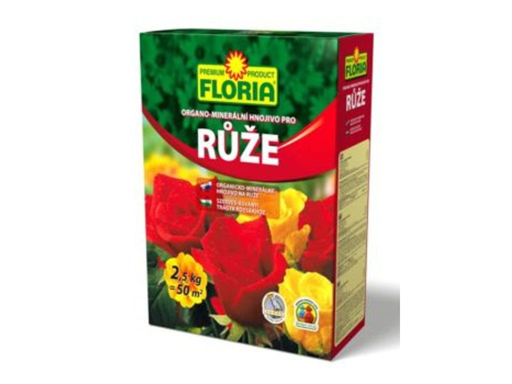 FLORIA Organo - minerálne hnojivá pre ruže - s obsahom dlhodobo a rýchlo pôsobiaceho hnojiva zaistí rastline dostatok živín, vďaka ktorým toto špeciálne hnojivo na ruže zaisťuje vyššiu tvorbu kvetov a predlžuje kvitnutie. Obsahuje vysoký obsah fosforu, ktorý podporuje bohatosť a vyfarbenie kvetov ruží a prírodné hnojivo GUANO. Správnym používaním hnojiva docielime zdravých a krásnych ruží.