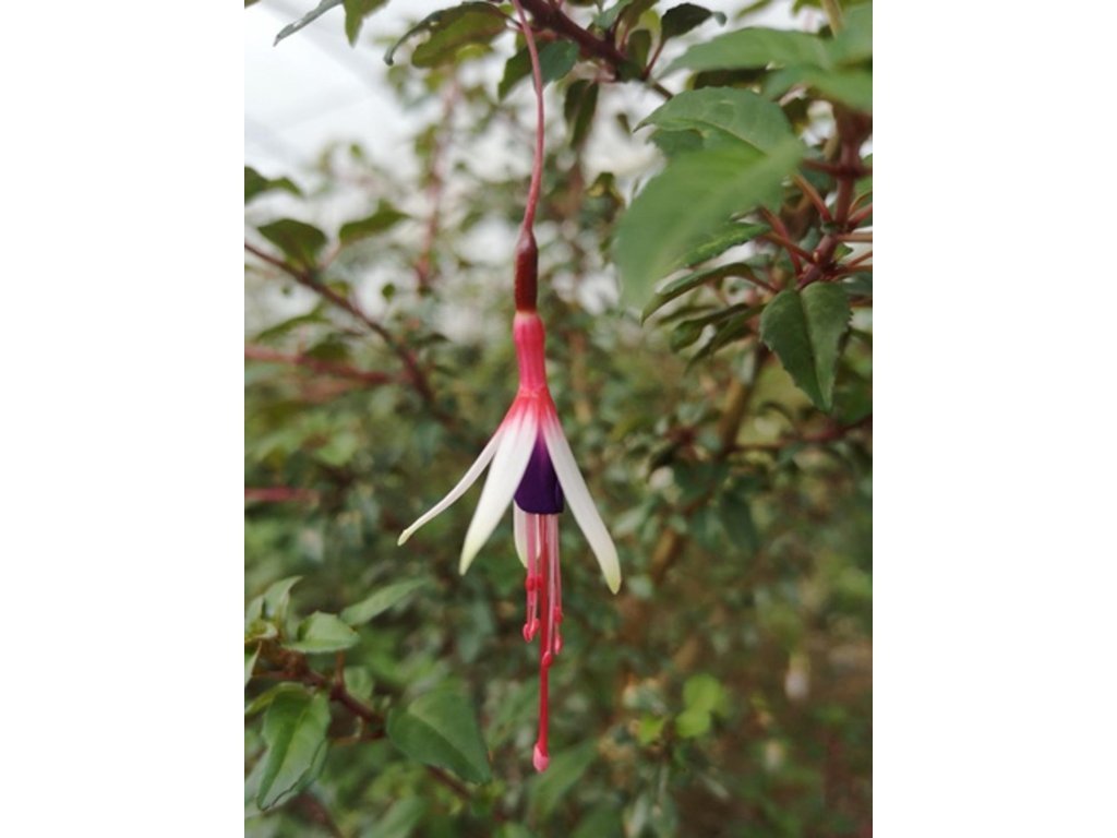 Fuchsia magellonská 'Arauco' - okrasná rastlina, ktorá v dospelosti dorastá do výšky 1 ma šírky 0,6 m. Listy sú malé, kopijovité, majú tmavšiu, zelenú farbu. Od začiatku leta táto fuchsia nakvitá podlhovastými, visiacimi a jednoduchými kvetmi v tónoch šarlátovej, bielej a fialovej farby. Kvitne na tohtoročných výhonkoch až do prvých mrazov. Vonkajšia časť je tvorená šálkou, tá vnútorná je potom trubkovitého tvaru. Tyčinky vykukujú nad korunkou. Rastlina je mrazuvzdorná, avšak odporúčame ju pestovať ako prenosnú. Skvele poslúži v záhone, nádobe alebo ako solitérna rastlina do záhrad. Naozaj krásna rastlina, ktorá by nemala chýbať v žiadnej záhrade.