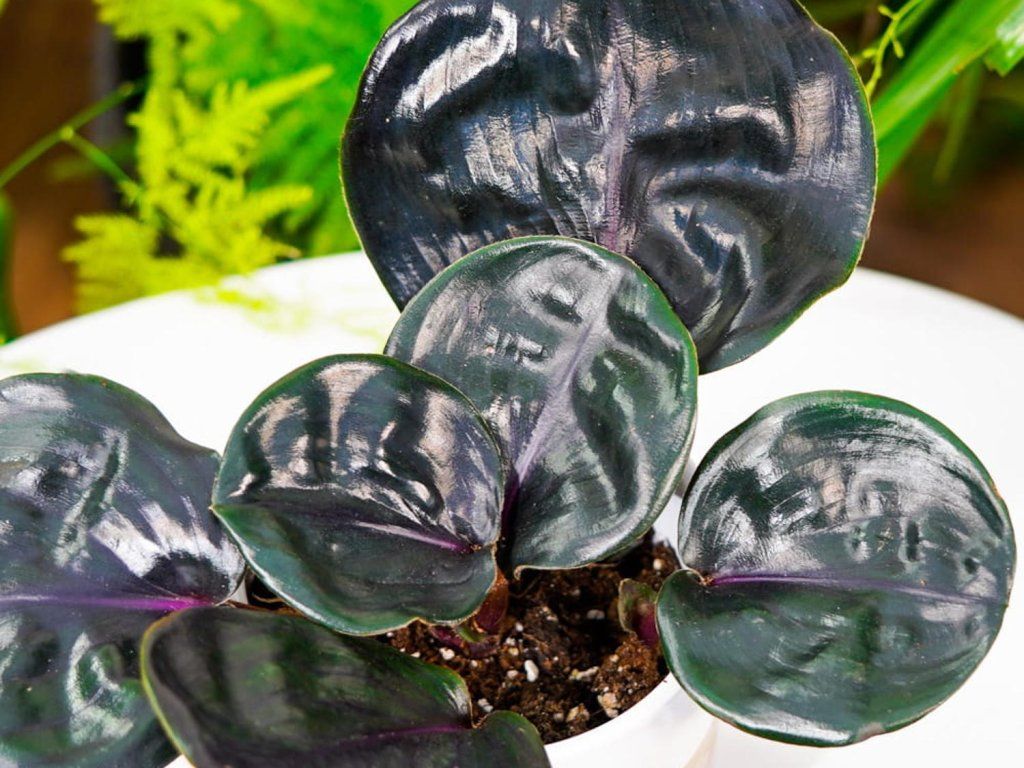 Geogenanthus ciliatus 'Midnight Pearl' - Geogenanthus patrí medzi veľmi vzácne izbové rastliny. Vyznačuje sa unikátnymi, kožovitými, hladkými a lesklými listami a fialovými stonkami. Tie sú sfarbené to tmavo fialové, na hornej strane sú takmer čierne s červenkastou fialovou spodnou stranou. Nové listy nesú purpurovo zelenú farbu, stred je červený. Táto zaujímavá rastlina spestrí každú miestnosť v interiéri. Skutočný unikát.