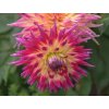 Georgína 'Electric Flash' - patria do čeľade hviezdnicovitých a botanické druhy pochádzajú z horských oblastí Mexika a Strednej Ameriky, kde striedanie sucha a dažďov podporuje tvorbu zásobných hľúz. Kultivar 'Electric Flash' sa radí medzi polokaktusové až kaktusové georgíny. Jazykovité kvety sú špicaté a čiastočne stočené dozadu, takže úbor nepôsobí ploche, ale vytvára jemne ihlicovitú textúru. Kvety dosahujú približne 16 cm a počas zrenia zvýrazňujú dvojfarebnosť od žltej so zlatým stredom k ružovočerveným až purpurovo tónovaným špičkám. Listy sú sperené, stredne zelené, stonky pevné, často s ľahkým tmavším nádychom. V plnej sezóne vytvára trs zhruba 90–100 cm vysoký a okolo 40 cm široký. Kvet obvykle nevonia a včely a motýle ho navštevujú menej ako jednoduché georgíny, zato farba dobre drží aj v podvečernom svetle. V kompozícii sa uplatní ako energický akcent medzi okrasnými trávami, železníkmi, šalviami alebo strapatkami. Do väzby prináša pravidelnú štruktúru a pri reze v polovici rozkvetu máva vo váze životnosť približne 5–7 dní, najmä pri čistej vode a chladnejšom umiestnení.
