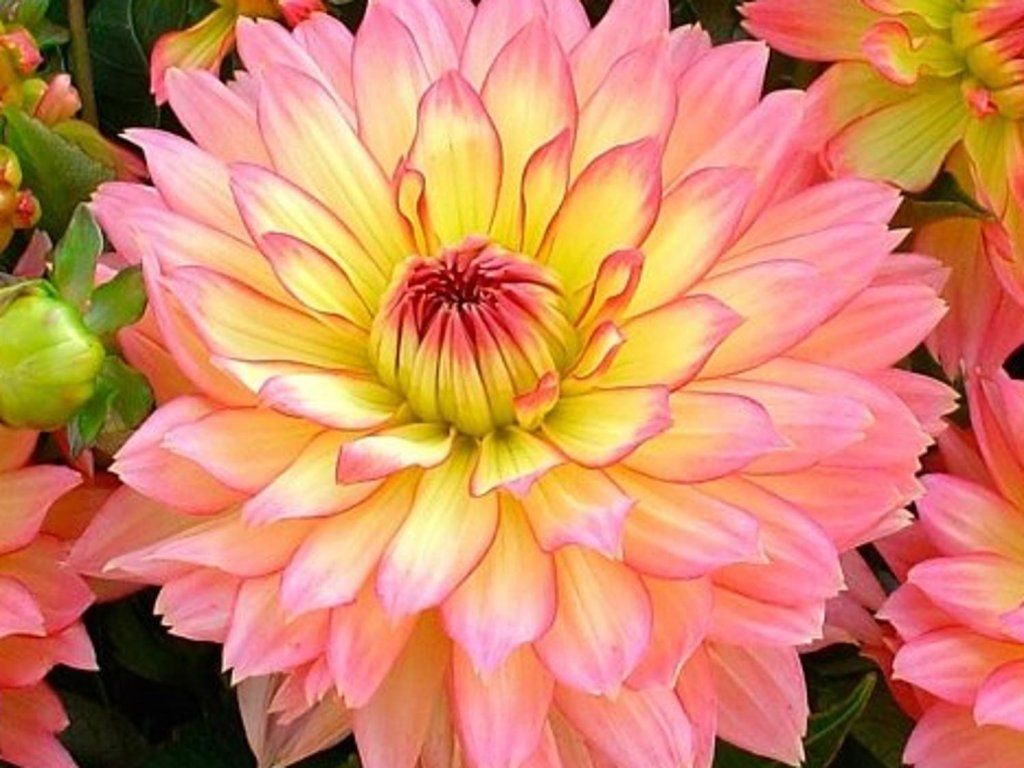 Jiřina 'Gallery Pablo' - nádherne zafarbený trpasličí kultivar, dorastá do výšky okolo 35 cm. Kvety sú veľmi bohaté a pôsobia vzdušne. Majú žiarivo žltú farbu a špičky sú zakončené pastelovo ružovým zafarbením. V priemere majú okolo 12 – 15 cm. Zaujímavý kontrast tvorí s tmavo zelenými listami. Kvitne masívne od začiatku leta až do prvých mrazíkov.