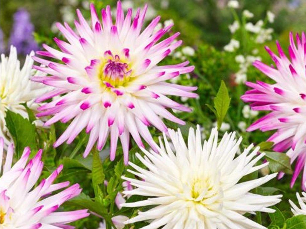 Georgína 'Hayley Jane' - patrí do skupiny kaktusovitých georgín a nesie veľké, výrazné kvety s priemerom okolo 10–15cm, ktoré spájajú krémovo bielu základnú farbu s jasne ružovo-fialovými špičkami okvetných lístkov, čo vytvára kontrastný a vizuálne pútavý efekt v letných a neskoro letných záhonoch. Rastlina má vzpriamený, robustný habitus a dorastá do výšky okolo 90–120cm so šírkou približne 50–60cm, čo ju robí dominantným stredovým alebo zadným prvkom v trvalkových či letničkových výsadbách. Kvitnutie prebieha od júla až do októbra a dlho udržuje bohatú farebnosť a bohaté kvety. Kvety sú taktiež vhodné ako rezané kvety do vázy, kde ich dvojfarebný efekt dobre funguje v kompozíciách. Vďaka výraznému sfarbeniu a veľkej veľkosti kvetov je obľúbená pre skupinové výsadby, solitérne umiestnenie aj kombinácie s inými trvalkami či letničkami, kde jej farby vytvárajú silný vizuálny kontrast a predlžujú obdobie farebnosti až do jesene.