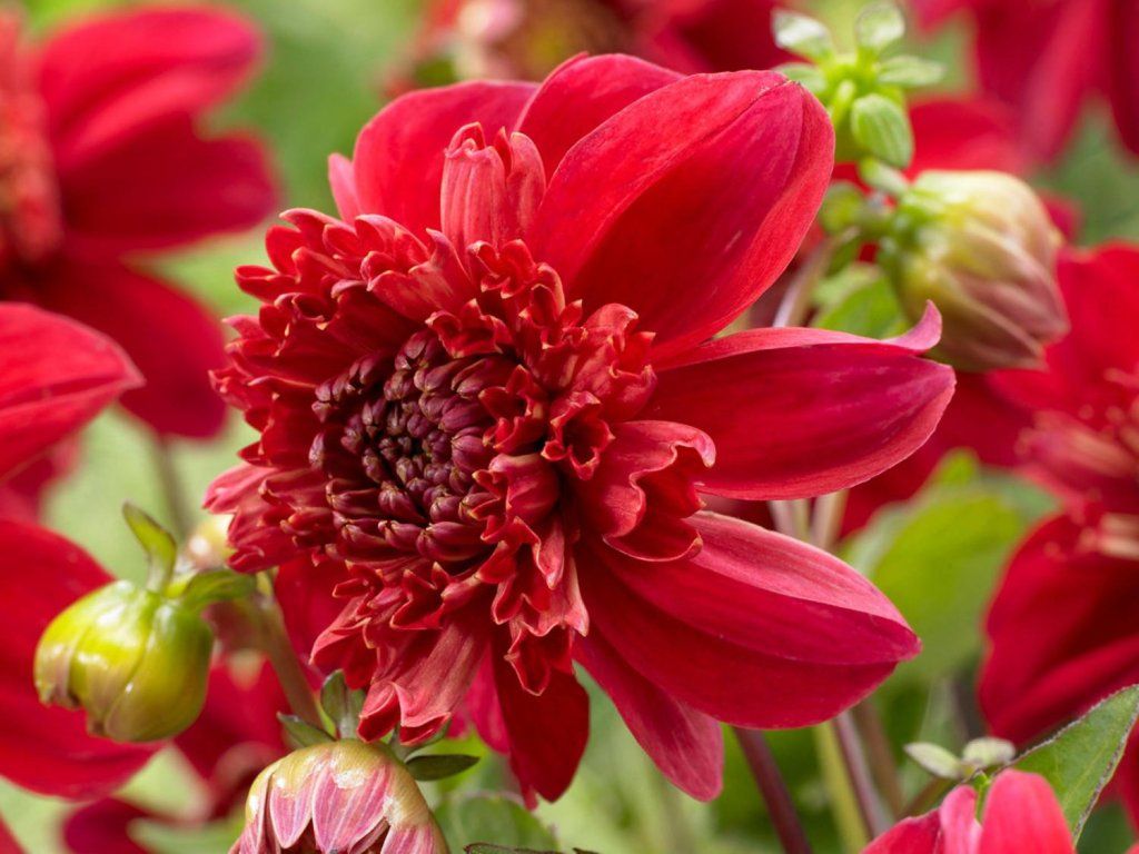 Georgína 'Inca' - georgíny sú jednou z najobľúbenejších okrasných cibuľovín vôbec. Táto odroda vytvára veľké, jasne červené kvety s intenzívnym tmavočerveným stredom. Kvety rastú na koncoch vzpriamených stoniek a objavujú sa od júla do októbra. Dorastá do výšky 50 cm. Je ideálna na výsadbu do akejkoľvek záhradnej kompozície, ale najlepšie sa hodí do skupinovej výsadby s inými georgínami a je vhodná na rezanie do vázy.