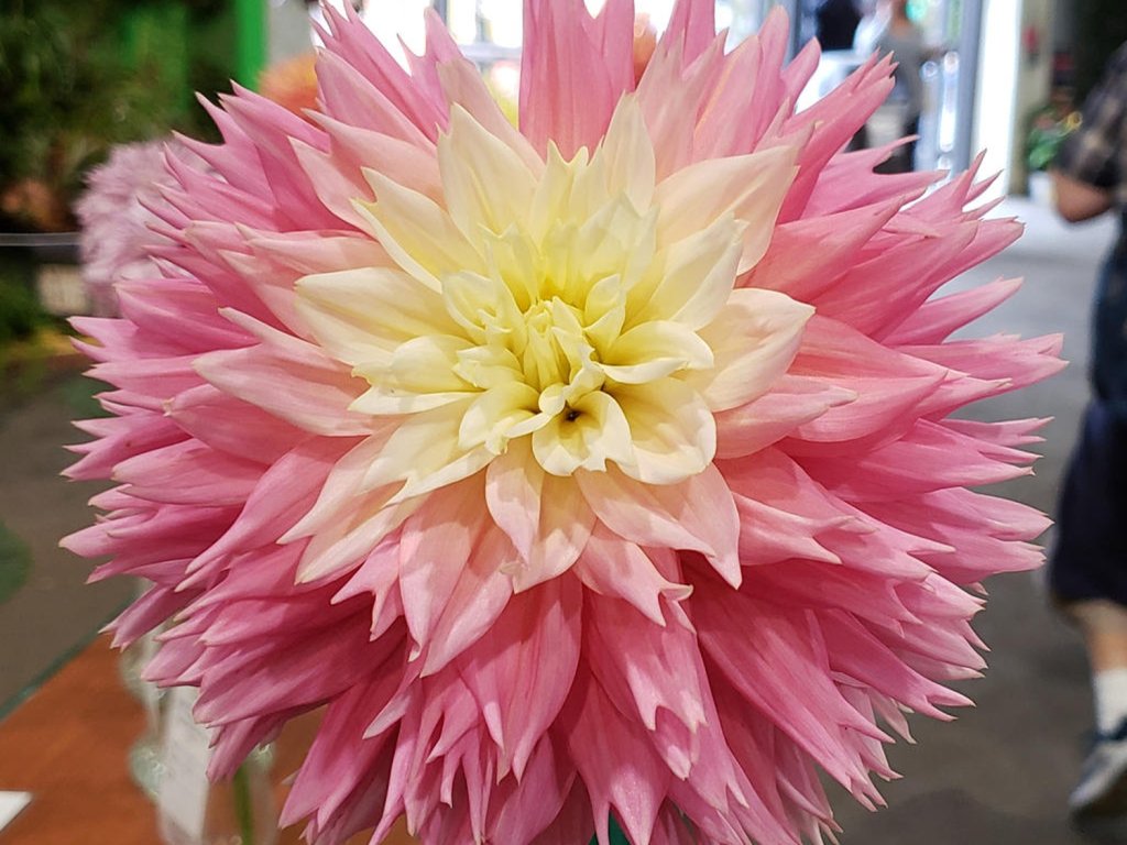 Georgína 'Just Married' - vzrušujúca georgína s plným kaktusovým kvetom.Vychádza z druhov pôvodom z Mexika a Strednej Ameriky, často z vyšších polôh so striedaním sucha a dažďov, kde prežívajú vďaka zásobným hľuzám. Kultivar 'Just Married II' je v európskych sortimentoch uvádzaný ako štipenitá georgína typu Fimbriata. Duté, ale pevné stonky nesú nad stredne zelenými, sperenými listami plné úbory približne 10–12 cm. Jazykovité kvety majú nápadne rozstrapkané konce, takže kvet pôsobí čipkovo a vynikne aj v podvečernom svetle. Sfarbenie býva svetlounca ružovej s krémovo žltým až primrulovo žltým nádychom v strede. Otvorený stred nie je tak výrazný ako u sasankovitých georgín, napriek tomu kvet pôsobí ľahšie ako bežné dekoratívne formy av záhone nepreťažuje kompozíciu. Plný kvet poskytuje opeľovačom menej peľu a nektáru ako jednoduché georgíny, hlavnou prednosťou je stabilný tvar a čistá kresba. V záhone funguje ako mäkký prechod medzi krémovou, marhuľovou a ružovou paletou, dobre nadväzuje na okrasné trávy, železnice, echinacea aj šalvie. V reze vytvára čitateľné, tvarovo stále kvety, ktoré dodajú väzbe štruktúru bez zbytočnej hmotnosti a pri reze v polovici rozkvetu mávajú životnosť vo váze okolo 5–7 dní.