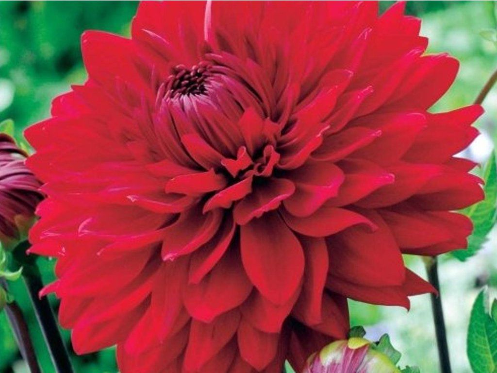Georgína 'Garden Wonder' - vyznačuje sa nápadnými, bohato plnými červenými kvetmi s priemerom okolo 15–20cm, ktoré vytvárajú dekoratívne usporiadané kvetné hlavy na vzpriamených stonkách. Rastlina dorastá do výšky 90–100cm a šírky okolo 40–60cm s bohatým zeleným olistením, ktoré vytvára pevný a pritom elegantný krík. Kultivar kvitne od júla až do prvých mrazov a poskytuje silný farebný akcent v letných aj jesenných kompozíciách. Červené kvety sú vynikajúce ako v záhonoch, tak v kombináciách s inými letničkami a trvalkami a dobre sa uplatnia aj v rezanej podobe vo váze. Vďaka svojej vzpriamenej stavbe sa hodí do zadných partií záhonov, kde pomáha vytvárať gradáciu výšky alebo ako solitérny prvok v skupinových výsadbách. Je vhodná aj na rez do vázy.