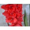 Gladiola 'Amiga' - gladiola záhradna (Gladiolus × hortulanus) nadväzuje na druhy rodu Gladiolus z južnej Afriky a Stredomoria av záhradách sa pestuje pre nápadné, postupne sa otvárajúce kvety v klase. Kultivar 'Amiga' patrí medzi veľkokveté hybridy a nesie sýto červené kvety s priemerom zhruba 8–10 cm, s ľahkým kontrastom v hrdle. Rastlina dorastá približne 90–120 cm a vytvára úzky trs okolo 30 cm, takže sa uplatní aj v užších záhonoch alebo v rezanej záhrade. Kvety sa otvárajú zdola nahor, vo váze tak mení rytmus niekoľko dní, a pevný stvol drží tvar aj v horúčave. V kompozícii pôsobí ako zvislá linka medzi strapatkami, rozchodníkmi, trstinami či šalviami, kde červená farba čitateľne vystúpi proti zeleným a striebristým listom. Podzemný orgán tvorí hľuza, ktorá sústreďuje zásobné látky pre ďalšie pučanie. Rastlina je mierne jedovatá, najvyššia koncentrácia je v cibuliach, preto je vhodná bežná opatrnosť pri manipulácii v domácnostiach s deťmi a zvieratami.Celkovo sú gladioly krásnym prvkom do záhrad, prinášajú farbu a romantický vzhľad do každej záhrady. Rozhodne by nemala chýbať ani v tej vašej. Kvety sú vhodné na rez a kvetinové väzby.