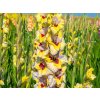 Gladiola 'Oracle' - veľkokvetý kultivar gladioly z čeľade Iridaceae, pestovaný predovšetkým pre výrazný kontrast farieb a využitie v záhradných výsadbách aj floristike. Rod Gladiolus pochádza prevažne z južnej Afriky a oblasti Stredomoria, kde rastie na otvorených, slnečných stanovištiach s dobre priepustnou pôdou. Kultivar ‘Oracle’ vytvára priamu, nevetvenú stonku s výškou približne 90-110 cm a úzke, mečovité listy sýto zelenej farby. Kvetenstvo je tvorené pravidelným klasom stredne veľkých až veľkých kvetov, ktorých základná farba je teplá žltá, výrazne doplnená tmavo ružovým hrdlom. Tento farebný prechod pôsobí plasticky a dodáva kvetom hĺbku aj optický stred, ktorý je dobre viditeľný ako v záhone, tak pri reze. Kvety sa rozvíjajú postupne od spodnej časti stonky smerom nahor, najčastejšie v období od júla do augusta, čím je zaistená dlhšia doba kvitnutia. V záhradných kompozíciách sa kultivar uplatňuje ako výrazný vertikálny akcent, dobre kombinovateľný s trvalkami a letničkami v jemnejších farbách, ktoré nechávajú vyniknúť kontrast kvetov. Rastlina nie je pestovaná pre plody a slúži výhradne na okrasné účely.