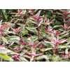 Hebe 'Sweet Dreams' - atraktívny kultivar vždyzeleného kríka, ktorý ponúka dekoratívne listy aj bohaté kvetenstvo v jednom kultivare. V dospelosti dorastá typicky 40-60cm na výšku a podobne do šírky, tvorí kompaktný, hustý vankúšovitý ker, ktorý si zachováva dekoratívny habitus bez nutnosti častého rezu. Listy sú úzke, podlhovasté, temne zelené s krémovo zelenými až fialovými okrajmi či mramorovaním, ktoré vytvárajú celoročný farebný kontrast a textúru v záhone. Mladé prírastky môžu mať ružovo-fialové sfarbenie, ktoré ďalej obohacuje vizuálnu príťažlivosť rastliny. Kvety sa objavujú v lete, typicky od júna do septembra a tvoria jemné hroznovité kvetenstvo svetlo fialových až bielych kvetov, ktoré priťahujú včely aj ďalšie opeľovače a predlžujú dobu dekoratívnosti v záhrade. Toto bohaté kvitnutie pridáva ďalší vizuálny rozmer nad už zaujímavým listovým olistením. Je odolné voči bežným mrazom a hoci je citlivejší na dlhodobé vlhko, dobre prospieva v dobre priepustnej pôde a na slnečnom až polotienistom stanovisku, kde sa jej farby a kvitnutie rozvíjajú najlepšie. Vďaka svojej kompaktnej forme, výraznej listovej farbe a dlhému kvitnutiu je veľmi vhodná ako dekoratívny solitér v prednej časti záhonov, lemovanie chodníkov, v skupinových výsadbách alebo v nádobách na terasách a balkónoch, kde vytvára trvalý ornamentálny prvok počas celého vegetačného obdobia.