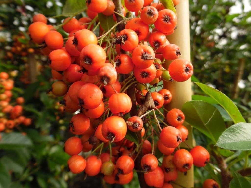 Hlohyňa šarlátová 'Orange Glow' - vzpriamene rastúci stálozelený krík s výškou do 3 m. Listy sú tmavozelené, kvety biele. Je obľúbený najmä pre svoje žiarivo oranžové plody, ktoré neopadávajú a zostávajú na kríku aj počas zimy. Je vhodný na živé ploty, spevnenie svahov atď.