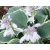 Hosta 'Frosted Dimples' - krásna a jemná trvalka, ktorá skvele poslúži ako súčasť trvalkového záhona. Kultivar sa štandardne dorastá do výšky okolo 30 - 40 cm. Hlavným charakteristickým znakom sú veľké dekoratívne listy. Tie sú sfarbené do modro zelenej farby s nápadnými žltými okrajmi, majú srdcovitý tvar. Rast je kompaktný. Kvety sú sfarbené do svetlo fialovej farby. Kvetenstvo nakvitá od čierna do augusta. Ideálna na výsadbu do trvalkových záhonov, nádob či ako solitérna rastlina. Nie je náročná na pestovanie a je plne mrazuvzdorná. Dokonale oživia tienisté miesta s ďalšími trvalkami. Budú sa vynímať spoločne s pakostmi, jarmankami, bergéniou, čechravou, sasankou a rôznymi papradinami.