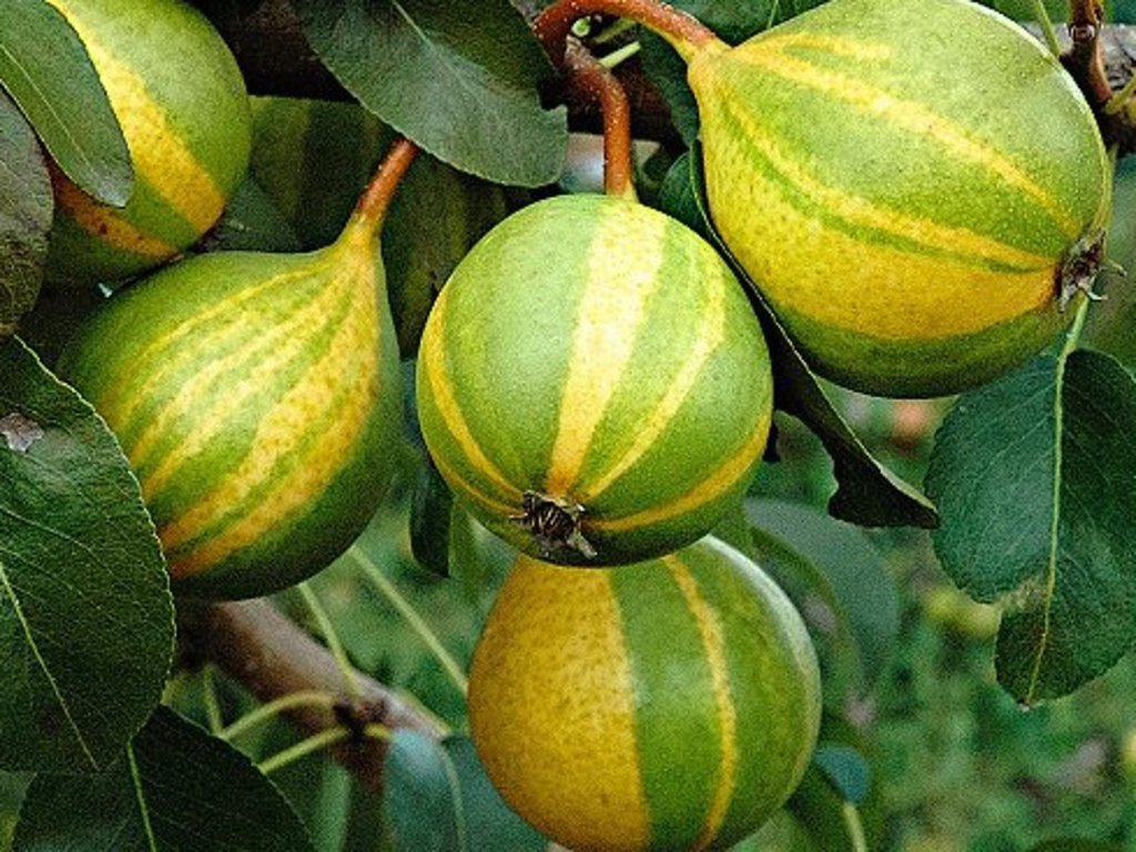 Hrušeň 'Schweizer Hose' - skutočná rarita medzi hruškami so stredne veľkými, nezvyčajne sfarbenými plodmi s maslovou, šťavnatou, bielou a sladkou dužinou. Pôvodné sfarbenie tejto odrody má pripomínať nohavice švajčiarskej gardy. Vhodnými opeľovačmi sú odrody Williams, Conference a Clappova. Dozrieva od polovice septembra. Za optimálnych podmienok možno plody skladovať až do januára. Hrušky sú vhodné na priamu konzumáciu, ale môžu sa použiť aj na iné účely, napríklad na tepelnú úpravu.