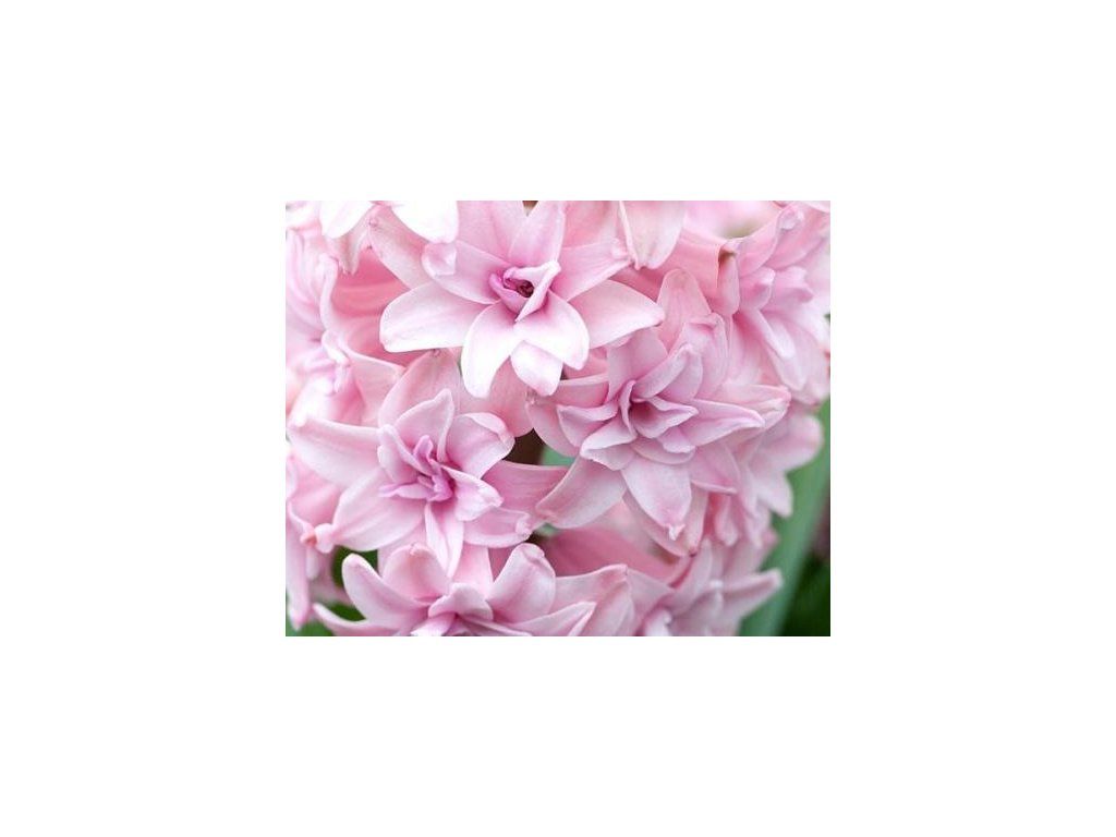 Hyacint 'Prince of Love' - plnokvetý, romanticky ladený kultivar v nežnej ružovej farbe, ktorá je nepatrne premiešaná s bielymi odtieňmi. Vzniká tak veľmi zaujímavá kombinácia. Aromatický. Dorastá do výšky 30 cm a nakvitá na začiatku jarnej sezóny. Listy sú sviežo zelené, dužinaté a trčia okolo kvetu.