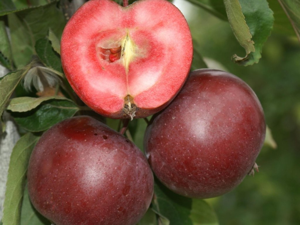 Jabloň stĺpovitá 'Pomfital' - atraktívna odroda, pochádzajúca z Nemecka, vhodná do menších záhrad. Túto jabloň je možné použiť aj ako okrasnú drevinu. Plody sú menšie až stredne veľké, sfarbené do tmavočervenej až purpurovej. Dužina je červená a šťavnatá a chuťovo sladko navinulá. Plody sú na zber pripravené v polovici septembra. Uchovávať ich môžeme do novembra.