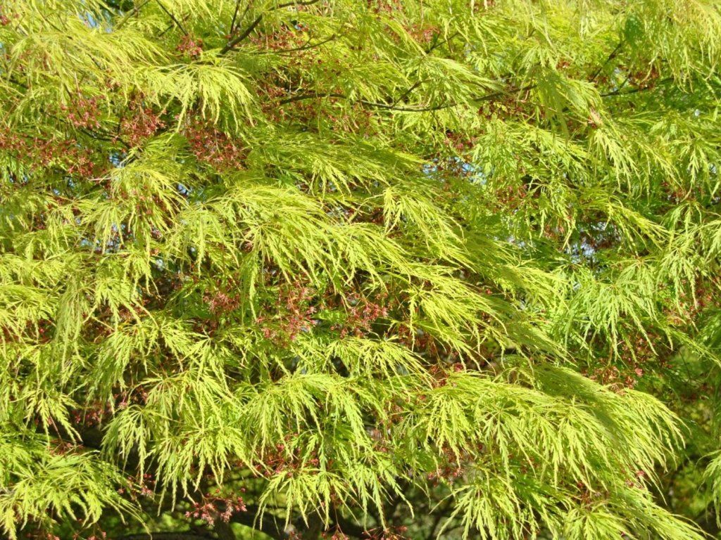 Javor dlaňovitolistý 'Dissectum' - jeden z najklasickejších krajkových, jemne strihaných kultivarov japonského javora.Tento kultivar je cenený pre svoj elegantný, jemný vzhľad a veľmi dekoratívnu štruktúru konárov.Rastie ako nízky, široko rozkladitý ker alebo menší stromček, obvykle 1,5 až 2 metre vysoký a často aj širší. Koruna je prirodzene previsnutá a kaskádovitá, vetvy tvoria oblúky a padajú dole ako jemný dáždnik. Vďaka tomuto tvaru je rastlina výrazným solitérom vhodným najmä do reprezentatívnych častí záhrady. Listy sú hlavnou ozdobou, sú hlboko delené do úzkych, čipkovitých lalokov, ktoré vytvárajú ľahký, vzdušný efekt. Sfarbenie je svetlo až stredne zelené počas jari a leta, na jeseň sa potom strom intenzívne vyfarbuje do oranžových, zlatistých a červených tónov. Je teda dekoratívna po celú sezónu a výrazne mení farby v priebehu roka. Je mrazuvzdorný približne do -20 ° C, mladé rastliny ale ocenia zimné mulčovanie koreňov a chránené miesto, najmä proti vetru. Vďaka svojmu malebnému, previsnutému tvaru a krajkovým listom je ideálny do japonských záhrad, k jazierkom, do skaliek, menších predzáhradiek či ako solitéra. Veľmi dobre vyzerá aj vo väčších nádobách, kde naplno vynikne jeho elegantný kaskádovitý habitus.