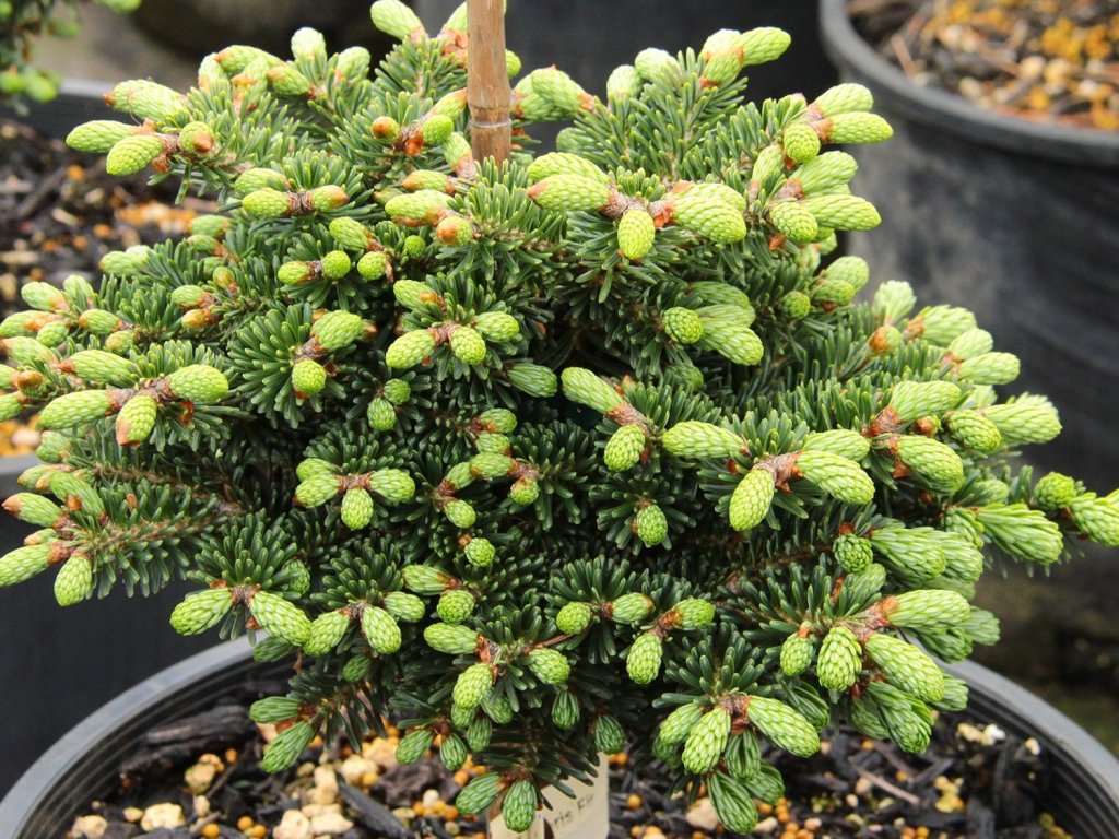Jedľa macedónska 'J.K. Greece' - zakrpatený pomaly rastúci kultivar pôvodom z Grécka, ktorý zaujme prirodzene guľovitým, kompaktným tvarom pripomínajúcim zelený bochník. Ročné prírastky dosahujú iba 2 cm, čo zaručuje dlhodobo stabilnú a nenáročnú údržbu. Vetvy sú mierne previsnuté a husto obalené tupými, tmavo zelenými ihlicami, ktoré udržujú dekoratívny vzhľad po celý rok. Konečná výška dosahuje približne 25 cm, šírka je podobná, vďaka čomu je ideálna do malých záhrad, okrasných záhonov, skaliek, nádob aj ako solitérny prvok. Kultivar sa výborne hodí na dekoráciu terás, balkónov a moderných záhrad, dobre sa kombinuje s ostatnými nízkymi drevinami a trvalkami. Vďaka pravidelnému, hustému tvaru môže byť použitý aj v skupinových výsadbách alebo ako zaujímavý prvok nízkych živých plotov.