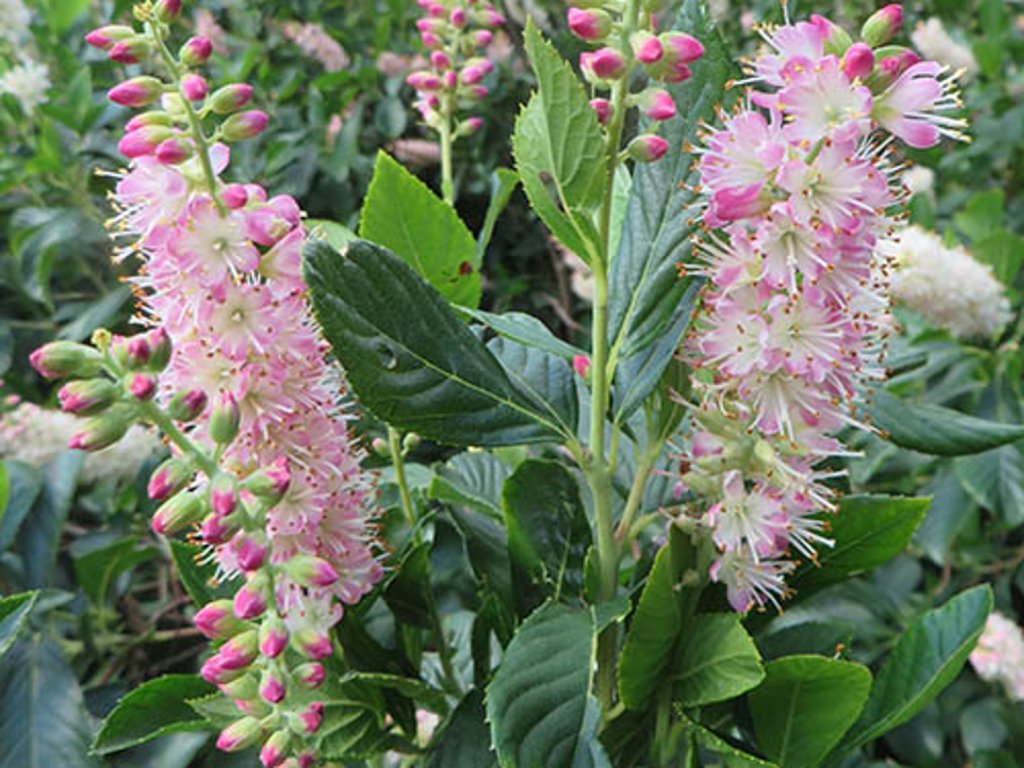 Jochovec jelšolistý 'Ruby Spice' - vyhľadávaný kultivar severoamerického druhu pochádzajúceho z východných oblastí Spojených štátov, kde prirodzene rastie v mokradiach, na lesných okrajoch a pozdĺž vodných tokov. Tento kultivar bol vyšľachtený s dôrazom na intenzívnu vôňu a dekoratívny farebný kontrast kvetenstva. V dospelosti vytvára hustý, opadavý ker vysoký približne 150-180 cm a široký 120-150 cm, s pravidelným, vzpriameným až mierne rozložitým hábitom. Listy má eliptické, stredne zelené, s jemne pílovitým okrajom, na jeseň sa vyfarbujú do žltých až svetlo oranžových odtieňov. Kvitnutie prebieha od júla do augusta. Na koncoch výhonov sa objavuje vzpriamené, úzko kužeľovité hrozno dlhé 10–15 cm. Puky sú tmavo ružové, po rozkvete sa kvety otvárajú do ružovo-bielych tónov, čím vzniká jemný farebný prechod. Kvety bývajú drobné, veľmi aromatické, s vôňou pripomínajúcou med a korenie a sú silne včelomilné. Plody sú nenápadné kapsuly bez okrasného významu. Ker sa uplatňuje v zmiešaných kríkových skupinách, v lesných a prírodných záhradách, ako podrast vyšších drevín alebo v blízkosti vodných plôch, kde pôsobí prirodzene a pokojne.