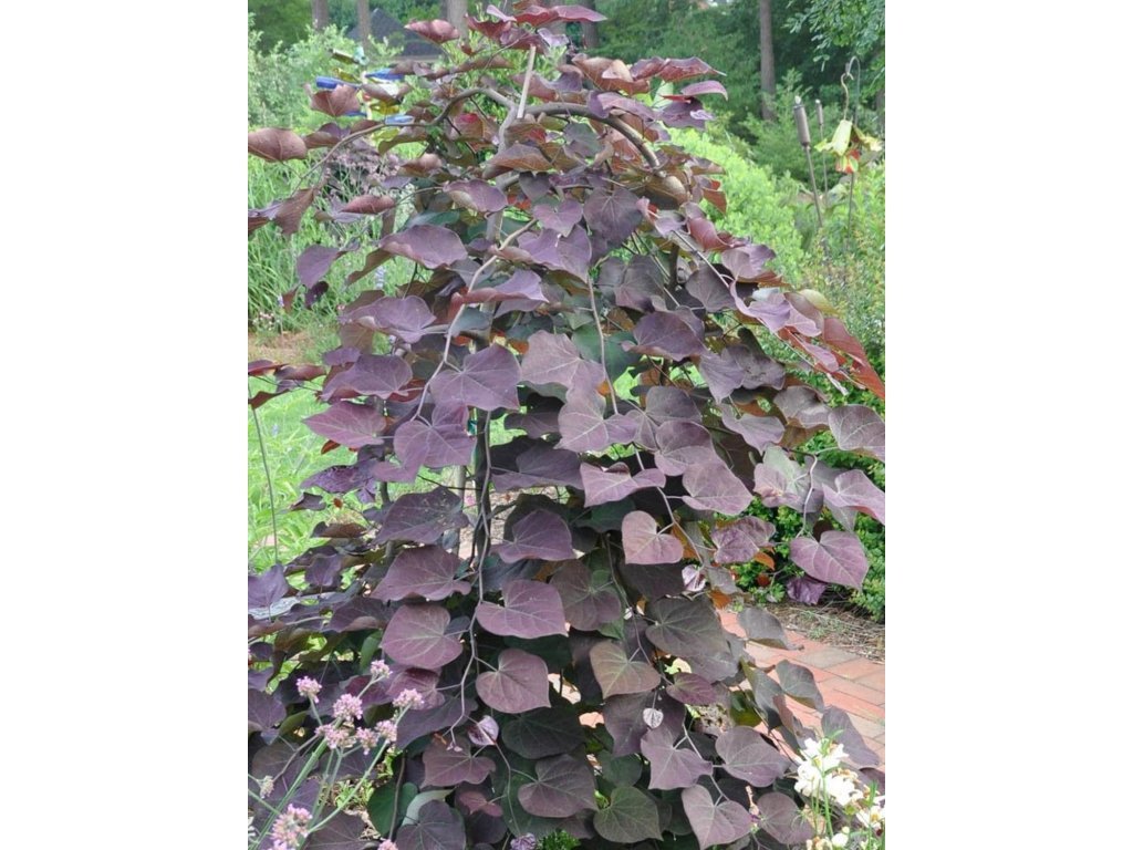 Judášovec kanadský 'Ruby Falls' - stredne rýchlo rastúci opadavý strom alebo ker, ktorý dorastá do výšky a šírky 200cm, podľa podmienok pestovania. Jedná sa o vyšľachtenú mrazuvzdornú odrodu, ktorá vytvára oválnu korunu s previsnutými vetvami a atraktívne sfarbeným olistením. Rovnako ako u ostatných druhov, aj tento v priebehu apríla zdobia zväzky ružových kvetov vyrastajúcich priamo na holých vetvách. Listy sú veľké, fialovo-rubínové a na jeseň sa sfarbia do žltých až oranžových odtieňov. Splní úlohu solitéry v akejkoľvek záhrade.