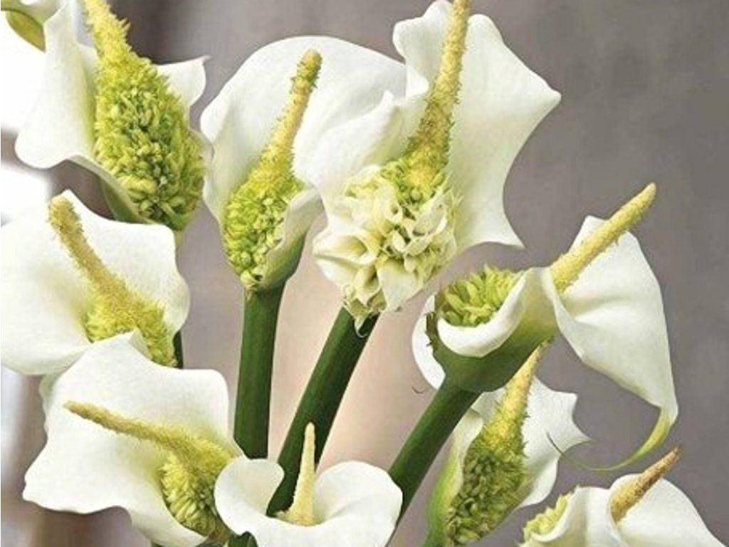 Kala 'White Swan' - výrazný, rozstrapatený stred a čisto biele kvety prinášajú tomuto kultivaru jedinečný, exotický vzhľad. Dorastá do výšky 90cm, v záhone dokáže expandovať až do šírky 60cm. Nakvitá od polovice júla do polovice septembra. Vhodný na rezu.