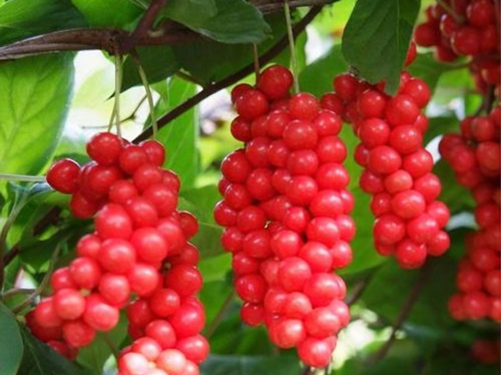Schizandra čínska - vysoko cenená popínavá drevina pochádzajúca z východnej Ázie – najmä z Číny, Mandžuska, Kórey a ruského Ďalekého východu. V tradičnej čínskej medicíne je známa ako „wu-wei-zi“ – plod piatich chutí, pretože jej bobule v sebe spájajú sladkú, kyslú, slanú, horkú aj ostro pikantnú zložku. Rastie ako opadavá liana, ktorá sa pri opore môže ťahať do výšky 6–10 metrov. Výhony sú tenké, pružné a rýchlo prirastajú. Listy sú oválne, sviežo zelené a na jeseň žltnú. Kvitne v máji až júni, drobnými krémovo bielymi až jemne ružovými, príjemne voňavými kvetmi. Rastlina môže byť samčia, samičia alebo obojpohlavná – väčšina bežných sadeníc je však jednopohlavných, preto sa pre istú úrodu odporúča pestovať samčiu aj samičiu rastlinu, prípadne zakúpiť samoopelivé kultivary. Plody dozrievajú v septembri až októbri a tvoria dlhé, hroznovité strapce svetločervených až tmavočervených bobúľ. Dužina je aromatická, výrazne kyslastá a chuťovo intenzívna. Bobule sa zvyčajne nekonzumujú samotné – sušia sa, zavárajú, lisujú na šťavu, používajú sa do čajov, odvarov či tinktúr. Majú vysoký obsah antioxidantov, vitamínu C, organických kyselín, lignanov a ďalších bioaktívnych látok. Rastlina je úplne mrazuvzdorná (cca do –30 °C), veľmi dobre znáša stredoeurópske podmienky a prakticky netrpí chorobami – ide o mimoriadne zdravú, vitálnu a dlhovekú rastlinu.
