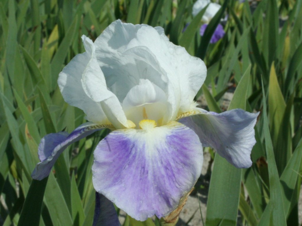 Kosatec nemecký 'Mission Ridge' - kosatec nemecký, známy tiež ako kosatec fúzatý. Jedná sa o nenáročnú trvalku s trsmi mečíkovitých listov v striebristo-zelenej farbe. Z nich vyčnievajú do výšky 50 cm väčšie farebné kvety. Spodné zvlnené okvetné plátky sú fialovo-modrej farby, so žltým jazýčkom, vrchné plátky sú naopak čisto biele. Nakvitajú od mája do júna. Kvety sa hodia aj na rez.
