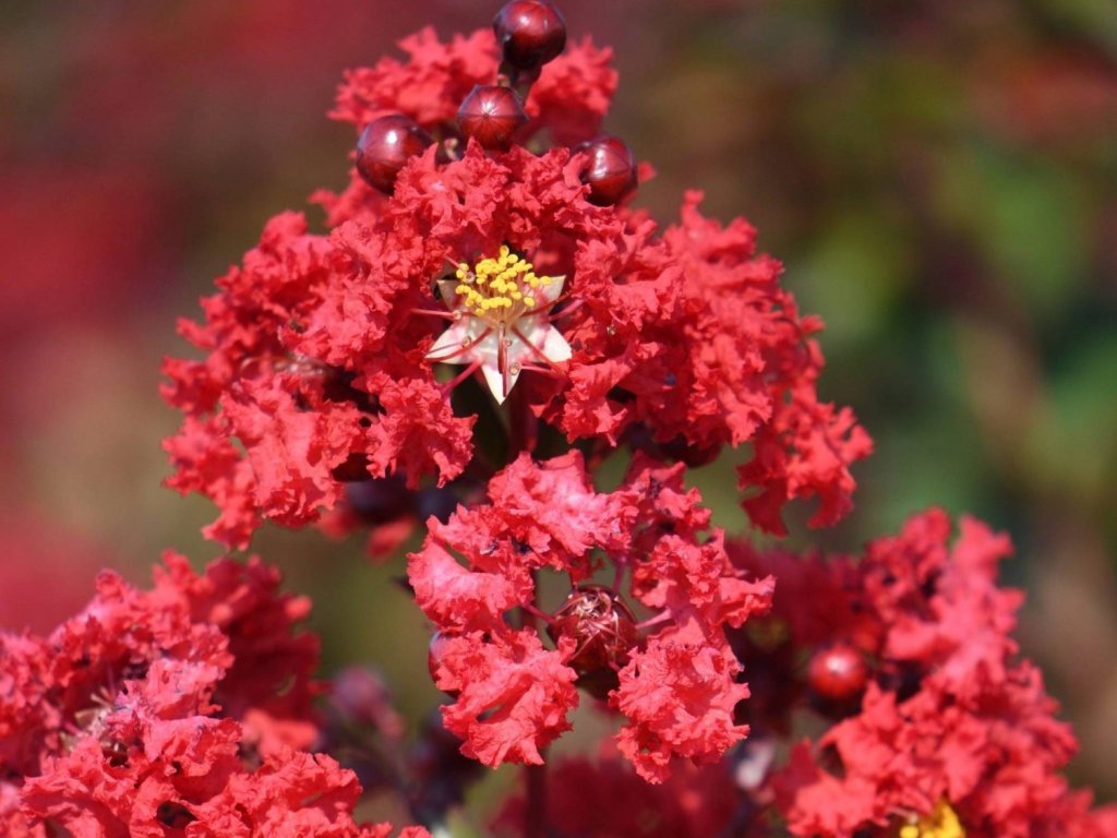 Lagerstroemia 'Rossa' - pochádza z teplejších oblastí Ázie a je známa kvitnutím v období vrcholného leta, kedy záhrada často prechádza do pokojnejšej fázy. Kultivar 'Rossa' je výber s červenými kvetmi, ktorých zvlnené okvetné lístky pripomínajú krep. Kvety sa združujú do koncových metlín na tohtoročných výhonkoch, najčastejšie od júla do septembra podľa priebehu leta a polohy. Jednotlivé súkvetia mávajú kužeľovitý tvar a v dobrých podmienkach dosahujú zhruba 10 – 20 cm. Rast je krovitý až stromovitý, v teplých polohách môže dosahovať niekoľko metrov, v záhradnej praxi sa často udržiava rezom v rozmedzí 2 – 4 m výšky a podobnej šírky. Listy sú oválne, v lete zelené, na jeseň sa vyfarbujú do žltých, oranžových až červených tónov. Staršia borka sa odlupuje v tenkých plátoch a vytvára dekoratívnu mozaiku hnedých a škoricových odtieňov, ktorá je efektná aj v zimnom období. Po odkvitnutí sa tvoria drobné hnedé tobolky. Kultivar sa hodí ako solitér k posedeniu, do predzáhradky alebo do kompozícií s travinami a suchomilnými trvalkami, je tiež atraktívny pre opeľovače.