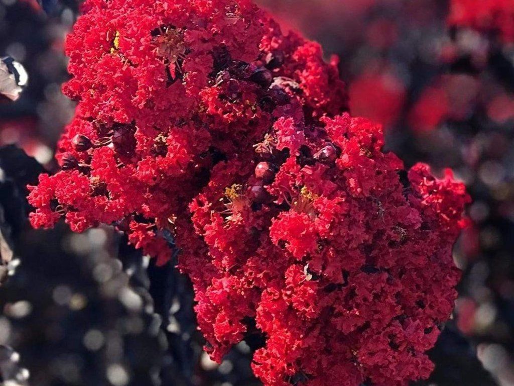 Lagerstroemia- Myrta krepová 'Double Dynamite' - opadavý krík alebo strom dorastajúci do výšky 2,5 - 3 m s približne rovnakou šírkou. Vyznačuje sa tmavým, takmer purpurovo-bordovým olistením, ktoré dopĺňajú bohaté, husté vrcholové kvetenstvo v žiarivej čerešňovo-červenej farbe. Mrazuvzdorný do -15 °C, v zime je potrebná ochrana.
