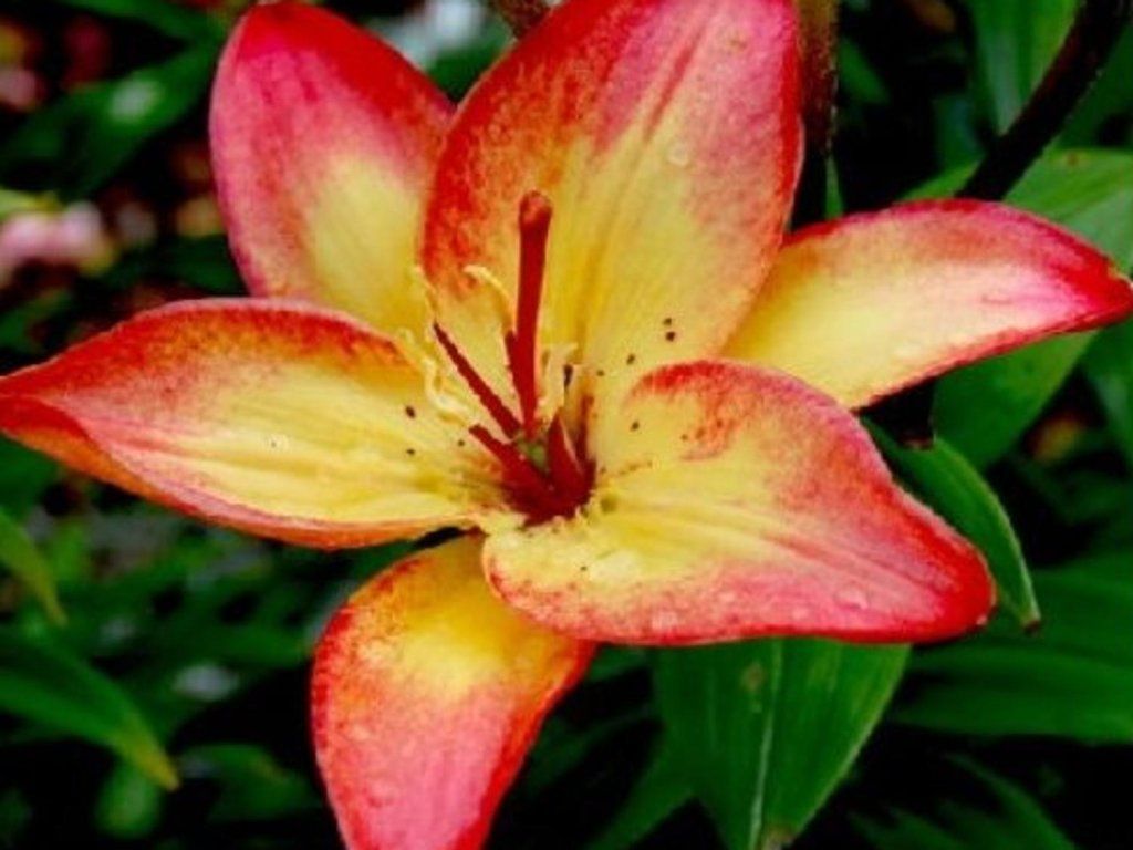 Ľalia 'Costa Del Sol' - úplne jedinečné kvety ponúka ďalšie z radu nízkych ľalií, dosahujúcich do výšky iba 30cm. Žlté okvetné plátky sú z veľkej časti lemované ružovou až červenou farbou a tvoria tak veľmi zaujímavý a výrazný kontrast. Nakvitá v júli a vďaka svojej výške sa hodí aj na výsadbu do nádob.