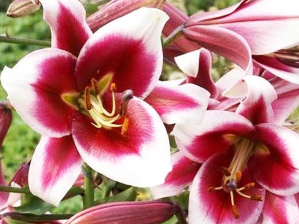Ľalia 'Friso' - okúzľujúci kultivar, ktorý patrí medzi orienpet ľalie, teda kríženca orientálnych a trubkovitých ľalií. Skupina nadväzuje na východoázijské druhy, najmä Lilium auratum a Lilium speciosum, a kombinuje ich vôňu s pevnejšou stavbou stvolov. Zo šupinatej cibule vyrastajú vzpriamené, málo vetvené stonky vysoké približne 150–200 cm, v priaznivých podmienkach až 210 cm, s praslenmi úzkych, lesklo zelených listov, a rastlina sa časom rozširuje na 45–60 cm. V júli až auguste sa postupne, často vo vlnách, otvára obvykle 3–8 previsnutých turbánkovitých kvetov s priemerom asi 20–25 cm. Okvetie je temne karmínové až vínové s mahagónovým nádychom, v hrdle s tmavými papilami, okraje plátkov sú krémovo žlté až zlatisté. Vôňa je korenisto sladká a najviac sa šíri navečer v teplom vzduchu, preto sa hodí aj na posedenie. Kvety navštevujú včely aj čmeliaky. V kompozícii funguje ako letná dominanta do pozadia trvalkových záhonov, k plotu alebo pred vyššie kríky, dobre ladí s okrasnými trávami, šantou, šalviou či denivkami, ktoré prekryjú pätu stvolov. K rezu je cenená vďaka pevným stvolom a postupnému nakvitaniu pukov, tmavý peľ sa v aranžmánoch často odstraňuje kvôli škvrnám. Vo váze obvykle vydržia niekoľko dní, kvety sa striedajú podľa dozrievania pukov.